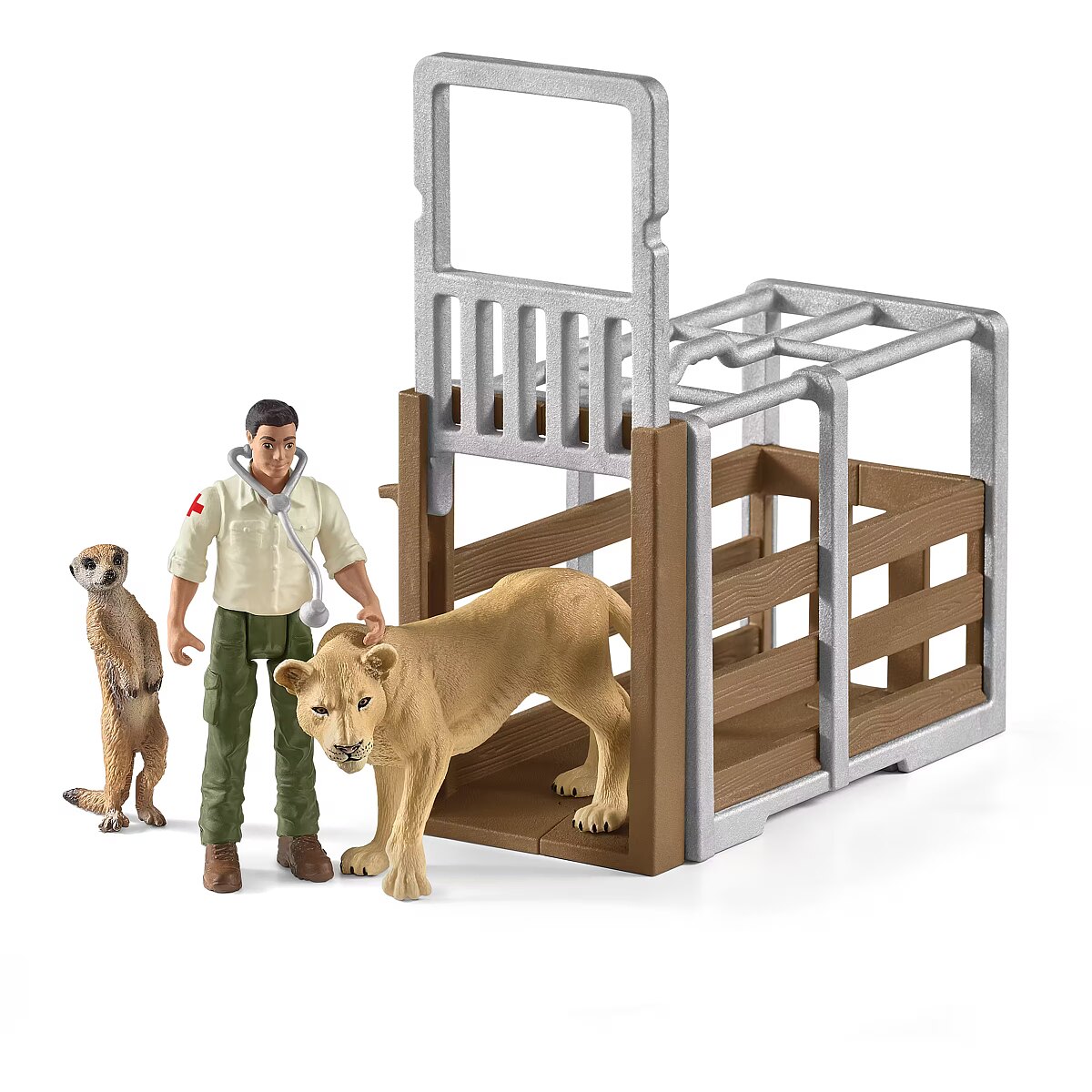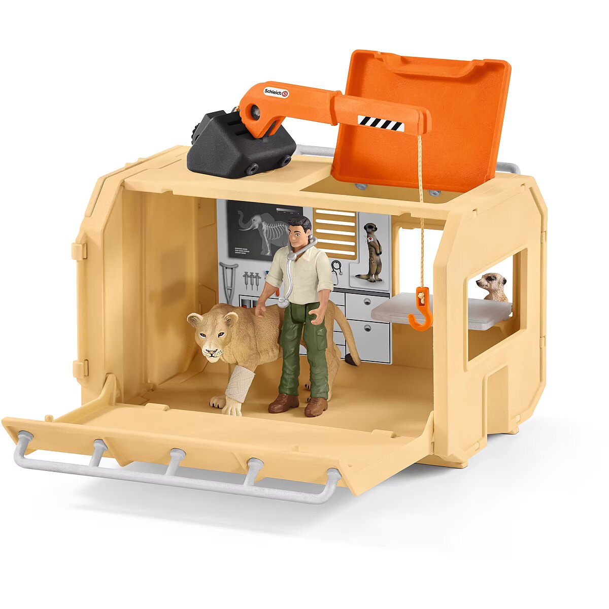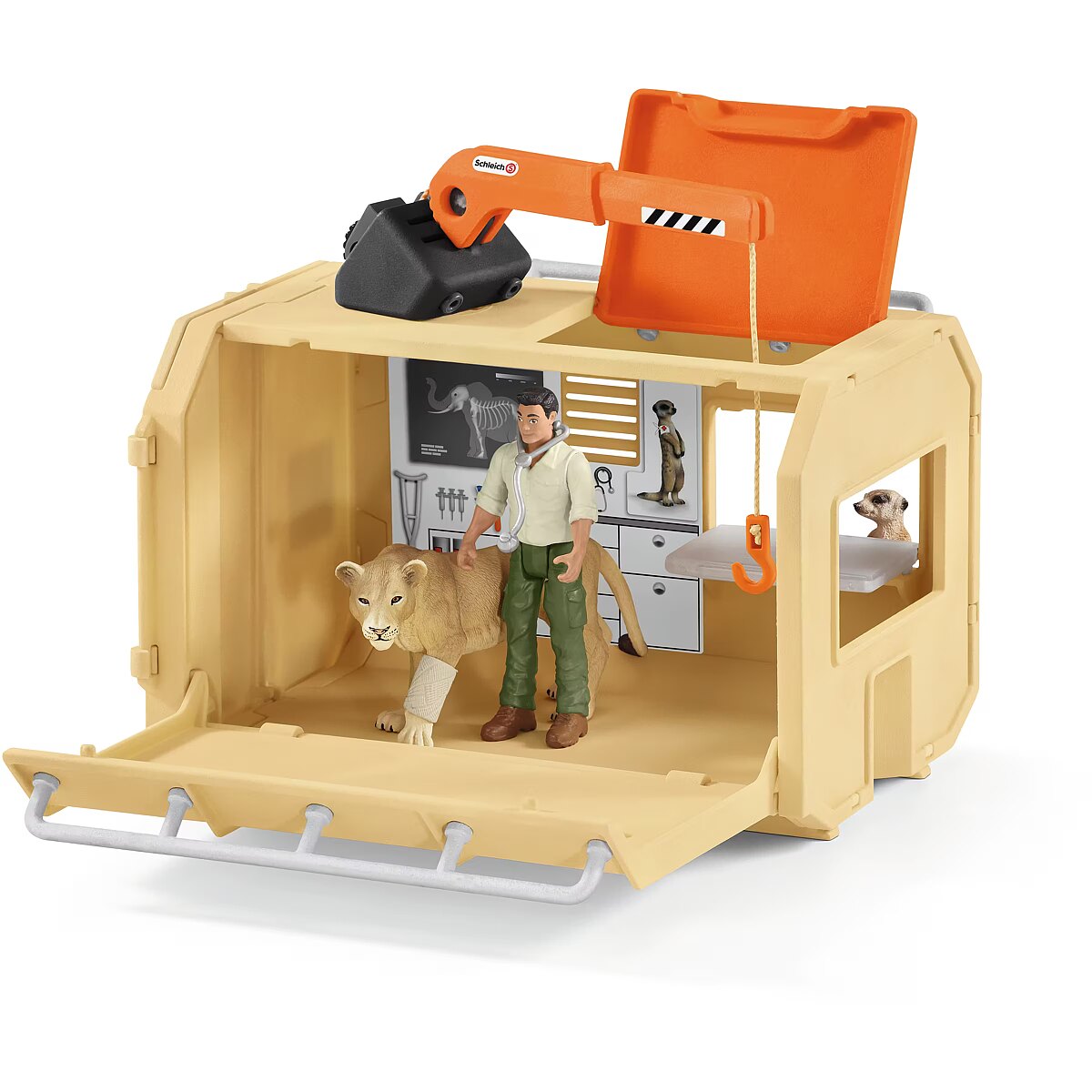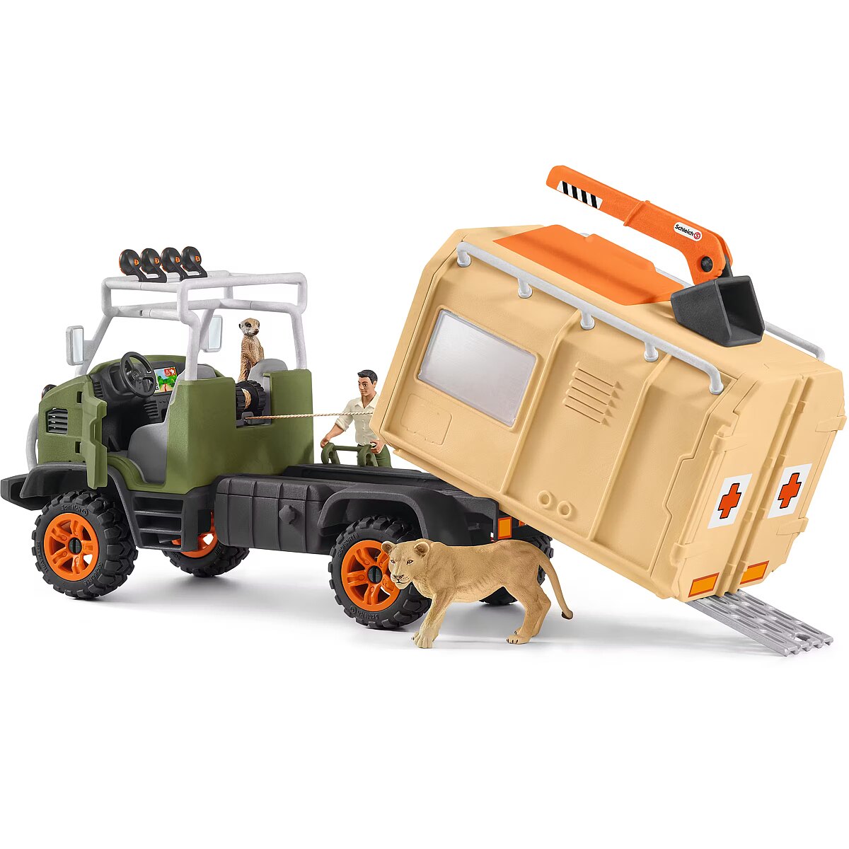 LongDesc - Like great stories...schleich® never goes out of play. Help Ranger Tom and his friend Ted the meerkat rescue the injured lioness with the Animal Rescue Large Truck! This animal rescue toy is a perfect gift for animal lovers ages 3 and up, and is a 2020 National Parenting Product Award (NAPPA) Winner. This set also plays nicely with our other toys, like the Croco Jungle Research Station.Ranger Tom and his friend Ted the meerkat are on a mission to rescue an injured lioness, and they need your help! Grab your medical supplies and journey to the savannah with the animal rescue truck from schleich® WILD LIFE. The award-winning Animal Rescue Large Truck playset from schleich® is your passport to hours of play and unbounded storytelling. The rescue truck is fully equipped with accessories, including a stethoscope and bandage for animals in need of medical care. Use the crane and winch to lift the lioness into the cage for safe transport! A meerkat figurine, lioness figurine, and Ranger Tom figurine are included. The animal rescue truck is part of an immersive world of imagination with other playsets from schleich® WILD LIFE (each sold separately). schleich® wild animal figurines and playsets for toddlers and kids introduce the limitless possibilities of storytelling and imaginative play. From realistic ocean and jungle animal figurines to our immersive playsets, schleich® WILD LIFE lets your stories run wild. Authentic wildlife figurines toys prowl, swim, and soar with rich, accurate detail and texture, while our full-featured wildlife playsets bring learning to life. Our wild animal toys love to cross into new play worlds to create stories with schleich® enchanted creature toys, farm animal figurines and dinosaur toys! schleich® wild animal toys and playsets are built to last for generations. All our toys meet the highest national and international safety standards.