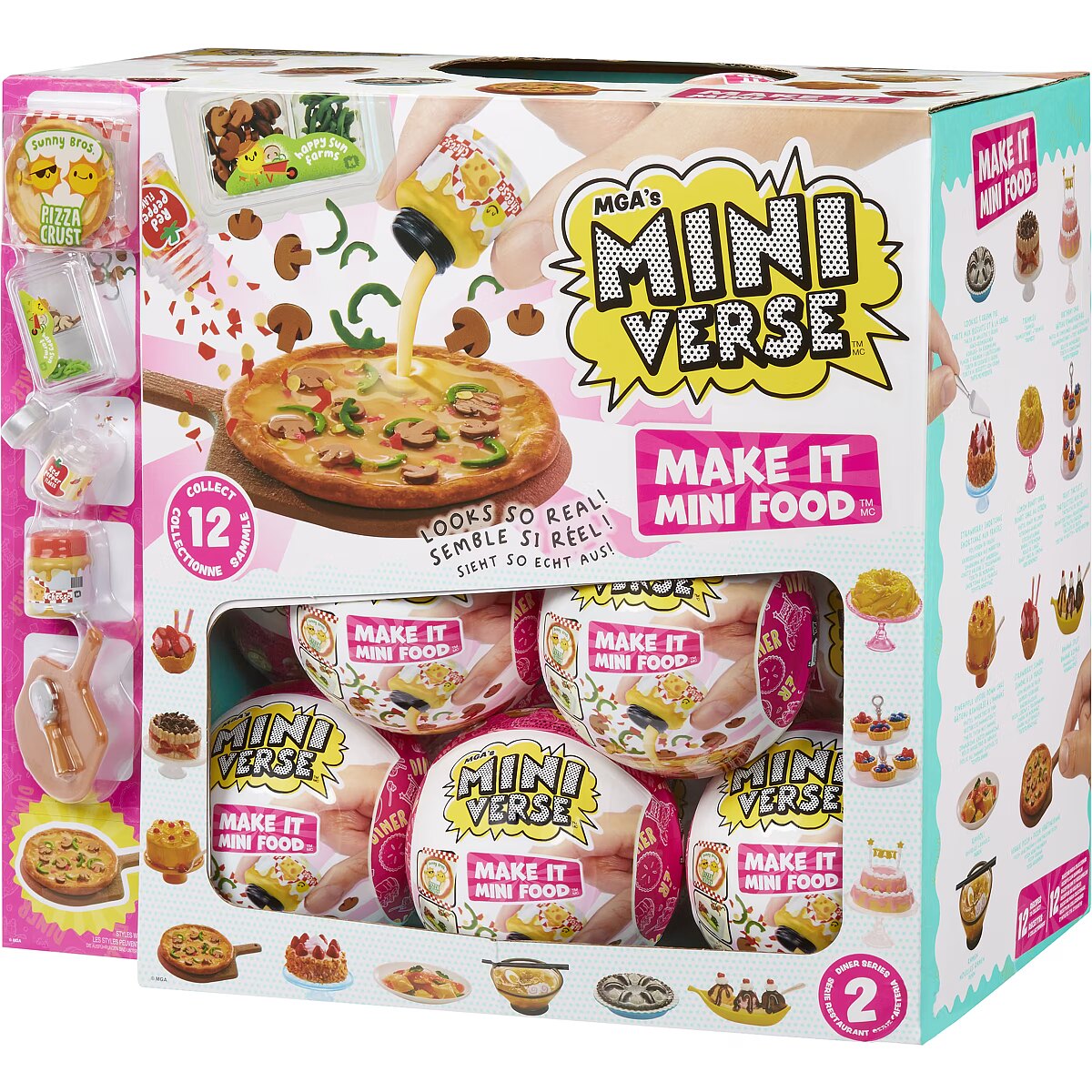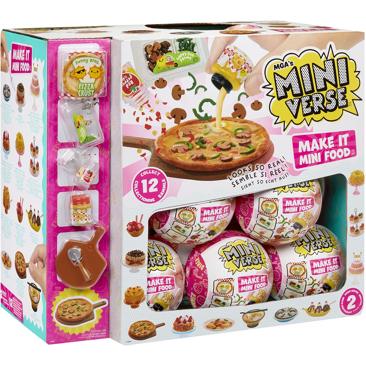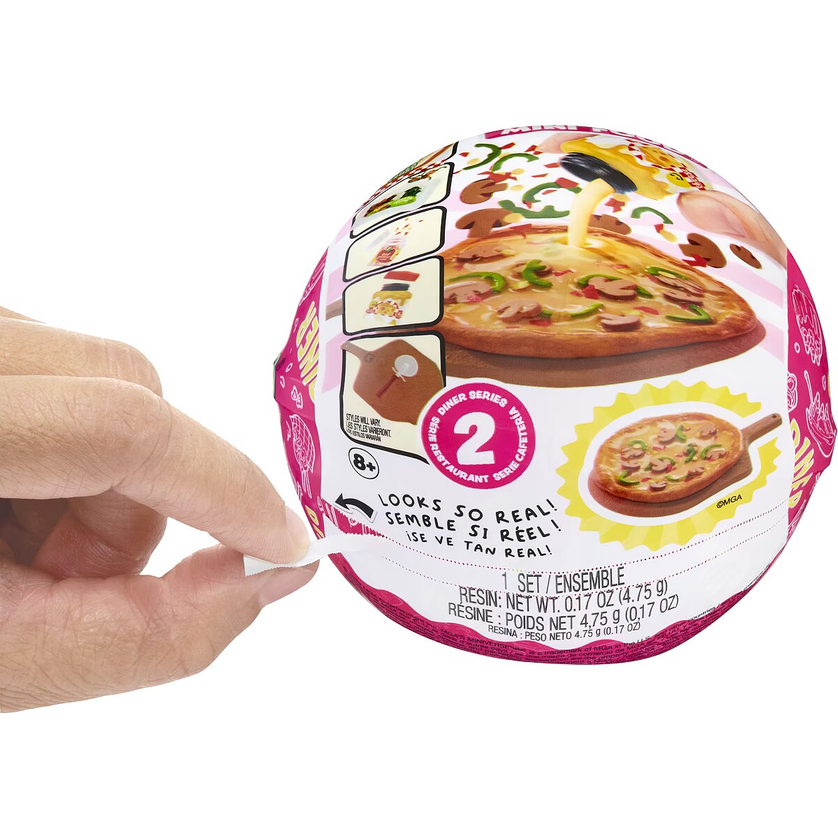 Description - What do you do when you combine crafting with collectability? Meet MGA's Miniverse, Make It Mini Food! The only mini collectible that you can PREP, SET & DISPLAY. Each ball comes with realistic mini "ingredients" and kitchen accessories to make your own mini replicas of your favorite snacks and desserts! Each package is a SURPRISE, so you won't know which mini you have until you unbox it! Compare the contents of your package with the included collector's guide, to see which mini you have. Follow the "recipe" card on the back to prep your mini. Once you've finished creating your mini, set your replica in any UV light until the resin has hardened. Once it's set, you've got a collectible ready for display! The fun doesn't stop there! Your finished replica is not the only item worth collecting. The mini kitchen accessories and packaging are just as cute and collectible. From mini replica versions of mason jars to nacho bags, to a pizza cutter, there are over 100+ unique Make It Mini Food Series 2 replica ingredients, packages, and kitchen accessories to collect and create your own mini collectibles.  Collect all the Series 2 Make It Mini Food Diner Collectibles! DISCLAIMER: Ingredients are NOT edible. Product shipped randomly, it is not possible to select a specific model. The price is for 1 pc.