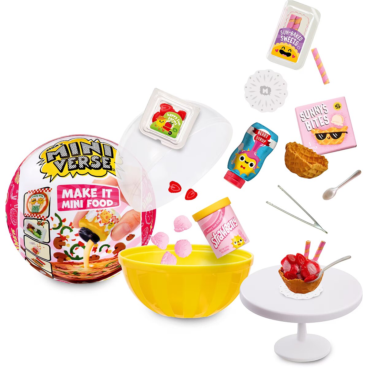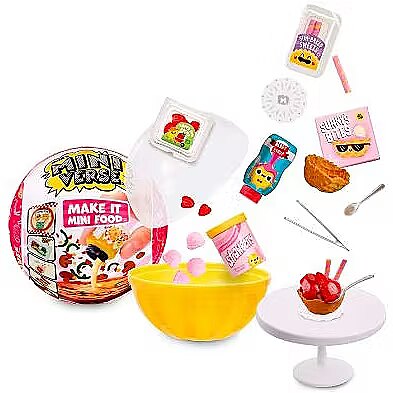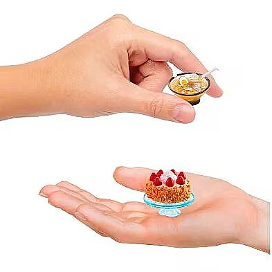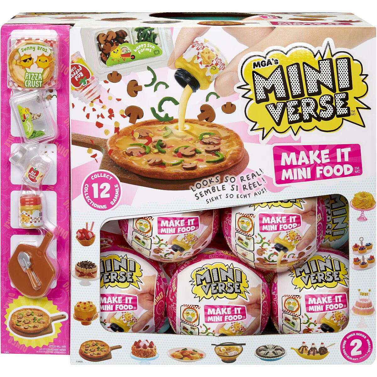 Description - What do you do when you combine crafting with collectability? Meet MGA's Miniverse, Make It Mini Food! The only mini collectible that you can PREP, SET & DISPLAY. Each ball comes with realistic mini "ingredients" and kitchen accessories to make your own mini replicas of your favorite snacks and desserts! Each package is a SURPRISE, so you won't know which mini you have until you unbox it! Compare the contents of your package with the included collector's guide, to see which mini you have. Follow the "recipe" card on the back to prep your mini. Once you've finished creating your mini, set your replica in any UV light until the resin has hardened. Once it's set, you've got a collectible ready for display! The fun doesn't stop there! Your finished replica is not the only item worth collecting. The mini kitchen accessories and packaging are just as cute and collectible. From mini replica versions of mason jars to nacho bags, to a pizza cutter, there are over 100+ unique Make It Mini Food Series 2 replica ingredients, packages, and kitchen accessories to collect and create your own mini collectibles.  Collect all the Series 2 Make It Mini Food Diner Collectibles! DISCLAIMER: Ingredients are NOT edible. Product shipped randomly, it is not possible to select a specific model. The price is for 1 pc.
