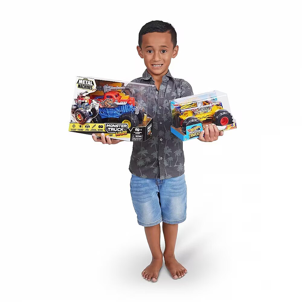 Description - Metal Machines Monster Truck Series 1, carton of 6 pieces Get behind the wheel of this huge monster and feel like a real Monster Truck driver! This car is really big and will appeal to fans of thrills. The toy Monster Truck from the Metal Machines series measures more than 20 cm in length. No wonder it's called a monster!  The interesting toy in the form of the Monster Truck will provide the best experience thanks to its realistic steering system and working chassis. Children are sure to be enthralled by the cool cannon located on the roof of the car, which you can really shoot! Destroy everything in your path with the big wheels, and when you need to defeat an opponent at a distance - use the functional cannon! Artificial lights and realistic sounds are sure to spark children's imaginations! Measuring over 20 cm in length, the Monster Truck Metal Machines toy truck. Working suspension, control system, battle sounds and artificial lights - the toy is truly realistic! Batteries included. Various designs. Price per carton containing 6 pieces.