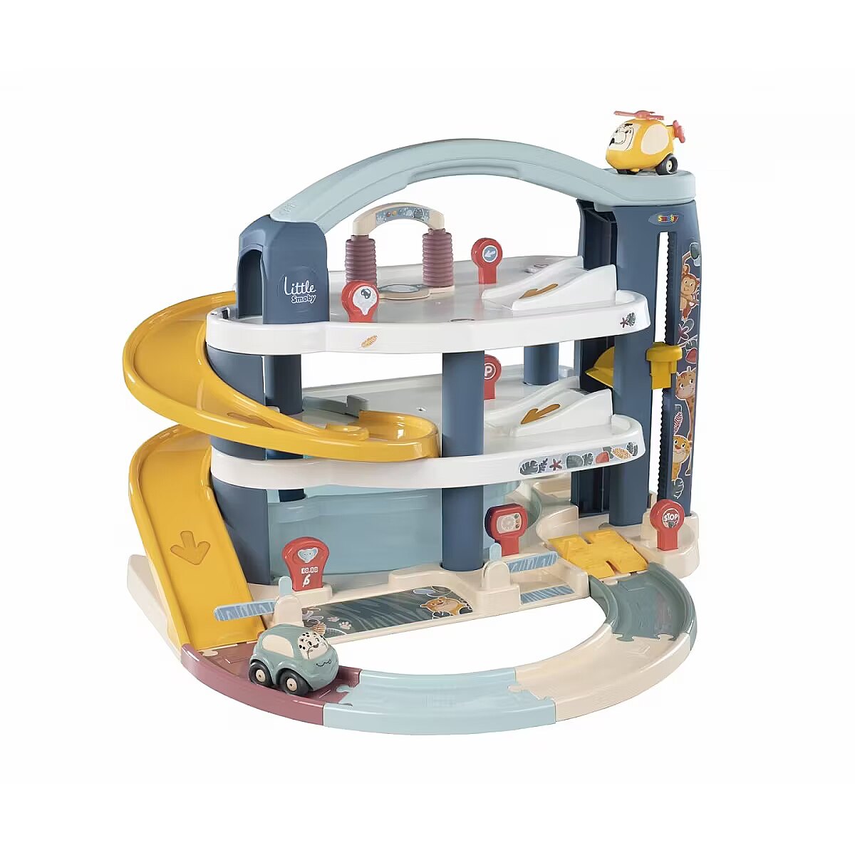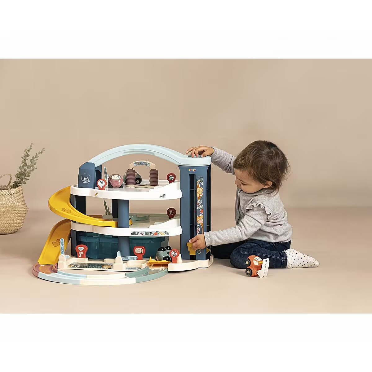 Description - Little Smoby Maxi garage Super sturdy 3-storey garage with numerous attractions including a car wash and lift. The set includes 1 car and 1 helicopter. The garage is easy to move thanks to the handle and has a practical container for the cars. Sturdy, three-storey garage with numerous features, including a car wash and lift, includes a car and helicopter, plus a storage box for cars. Convenient handling - the built-in handle makes it easy to carry. Extensive equipment - many attractions: mega ramp to slide down 3 floors, secret hatch to make the cars disappear, lift, car wash, bridge, petrol station, helipad. Quality toys from Little Smoby - a French brand from a renowned manufacturer that has been committed to the safety of toddlers since 1924 and puts the joy of children at the heart of its goals. Size and purpose - the maxi garage is the ideal gift for a child from 18 months, dimensions 62x60x43 cm, made in France. Little Smoby is a brand of baby toys from the renowned French toy manufacturer Smoby, which since 1924 has been providing sturdy toys that will last for years, responsibly supporting the healthy development of children. The Little Smoby collection is distinguished by its muted colours, which have a calming effect on the nervous system of the youngest children. This 3-storey Maxi garage gives children many opportunities for interesting and joyful play and delights with its variety. Here, something unusual happens at every stage of play. The car park is also a repair area for cars. It will allow you to take care of the appearance of your cars, just like in a reputable workshop. This toy is the ideal gift for the youngest car enthusiasts. In addition, the rounded shapes and numerous play options guarantee safe and soothing play.