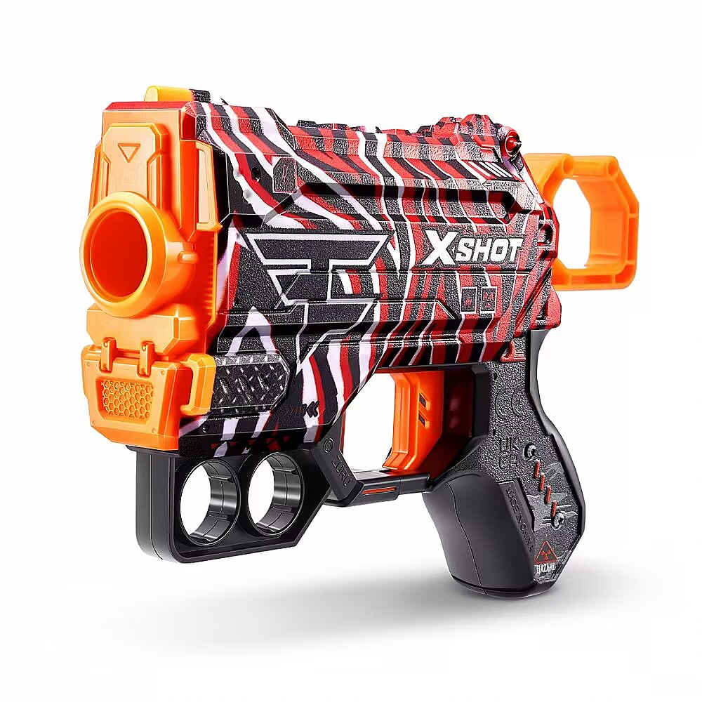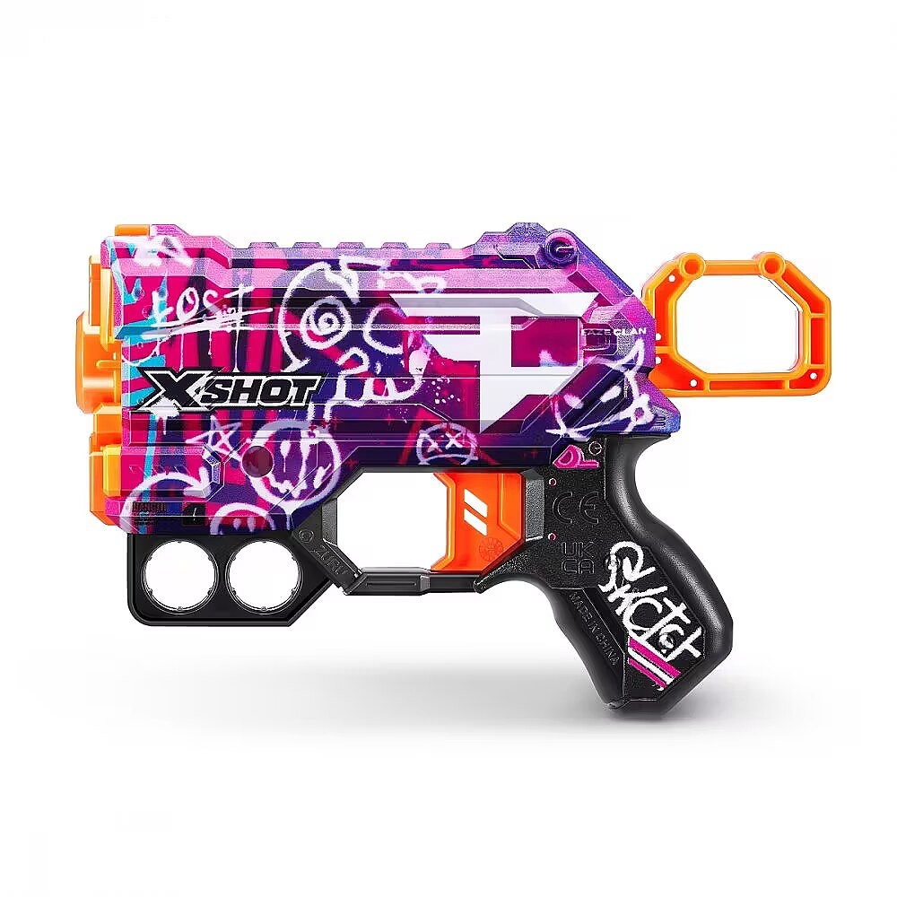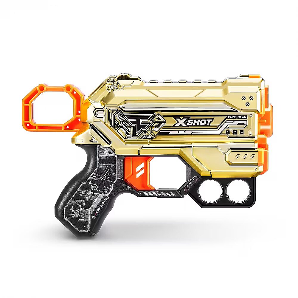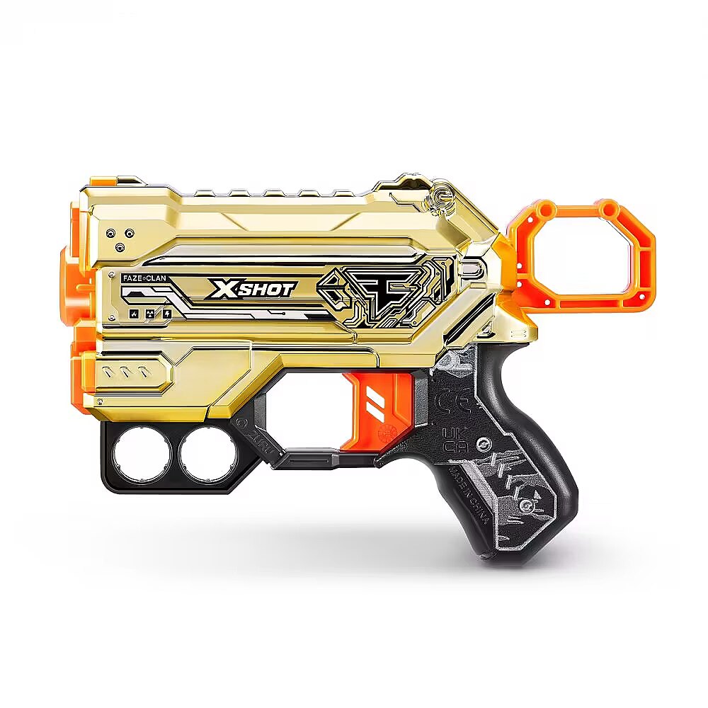 LongDesc - XSHOT Skins FaZe Clan Menace Mystery Blaster (4 Darts) ZURUXSHOT and FaZe Clan have joined forces to combine professional gaming with the in-game experience of skinning your blaster into the real world. The XSHOT Skins FaZe Clan Menace Mystery Blaster is the perfect small blaster to complete your collection. It packs enough power to take on targets 27m / 90 feet away! This Menace blasters small stature makes it the perfect concealed weapon to surprise your enemies with. There are 5 Mystery Skins to collect including the rare gold blaster. Choose different, choose XSHOT Skins.