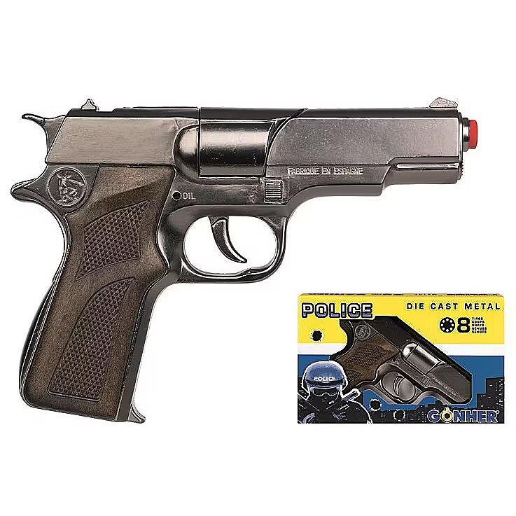 Security - For use only under direct adult supervision. Do not use near the ears. Improper use may cause hearing damage. Do not shoot at home! Caps must be used only in accordance with the manufacturer's instructions. This model complies with current safety regulations. In order for the noise level to comply with the UNE-EN 71-1 standard. WICKE EURO CAPS must be used. Any other type of cap may be a source of higher noise. GONHER S.A. assumes no responsibility for the conduct of users, nor for any consequences arising therefrom. Keep the address. Manufactured in Spain.