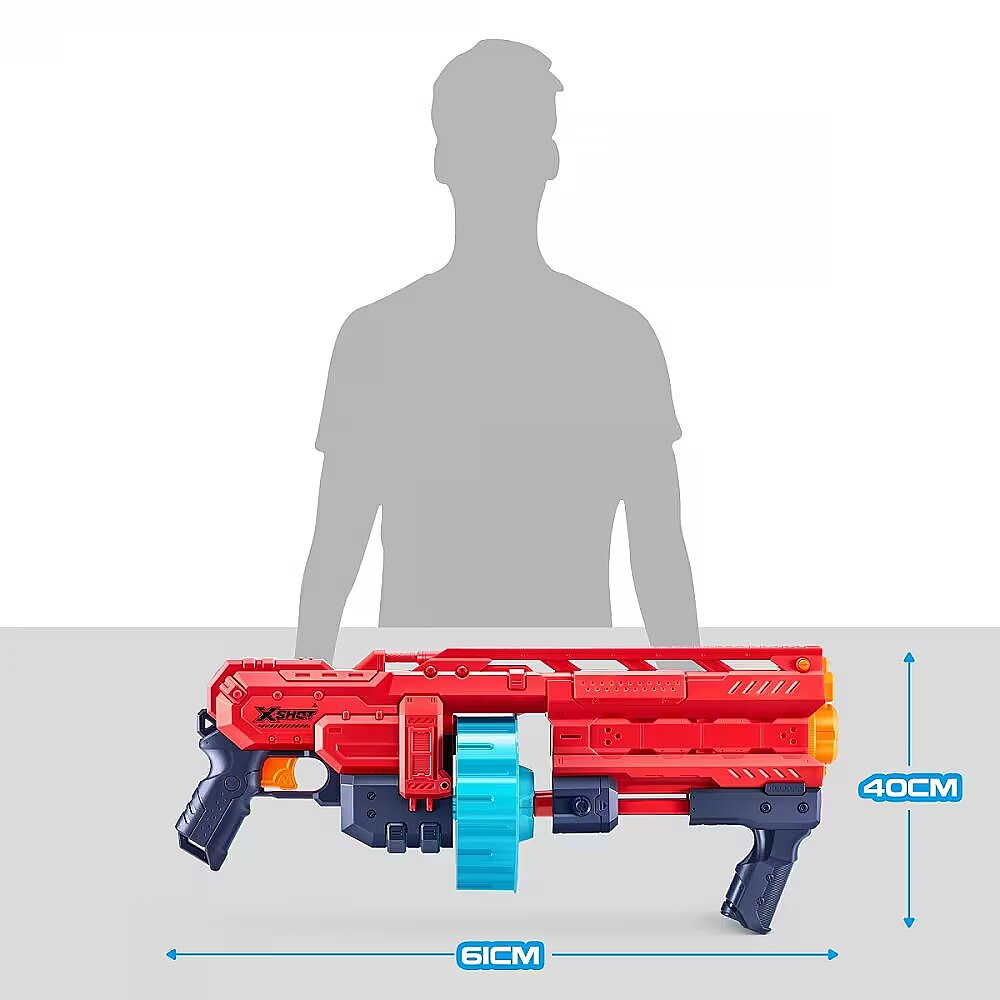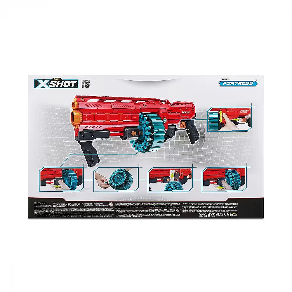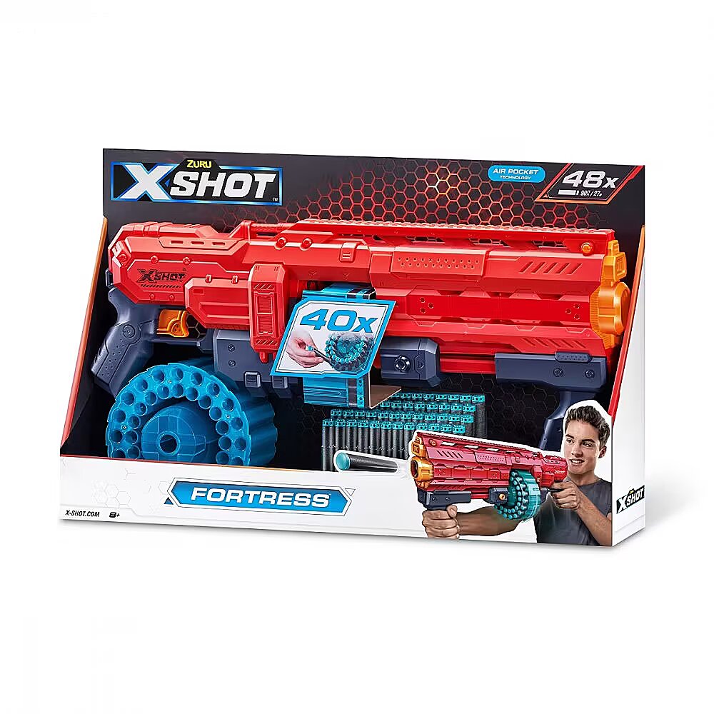 Description - X-Shot Excel Fortress 48-dart launcher Make your enemies flee in terror when you grab the state-of-the-art X-Shot Excel Fortress launcher! Lead the revolution with a weapon that sows real fear! Thanks to the special mechanism, you will shower your enemies with a hail of arrows and easily win every battle. The high-capacity magazine with a capacity of 40 arrows allows you to survive the longest battles and finish off your enemies before they even run out of ammunition! The set with the Excel Fortress X-Shot blaster and arrows is a ready-made recipe for active fun. The top-quality launcher has a magazine for 40 arrows and allows you to hit targets from up to 27m away! The magazine of the launcher rotates automatically and the two layers for switching will ensure longer play without the need for frequent reloading. The X-Shot launcher has special rails - for attaching various upgrades in the future and taking the fun to a new level! The set includes the state-of-the-art Excel Fortress launcher and ammunition of 48 X-Shot foam arrows. The arrows deliver accurate hits thanks to their precision and speed of flight. Each shot can hit a target from up to 27 metres away! The magazine with a capacity of 40 bullets guarantees long fun. This launcher is the dream of many boys - the automatic magazine and the capacity of 40 arrows mean uninterrupted active play with lots of possibilities! The toy is suitable for children aged 8 and over.