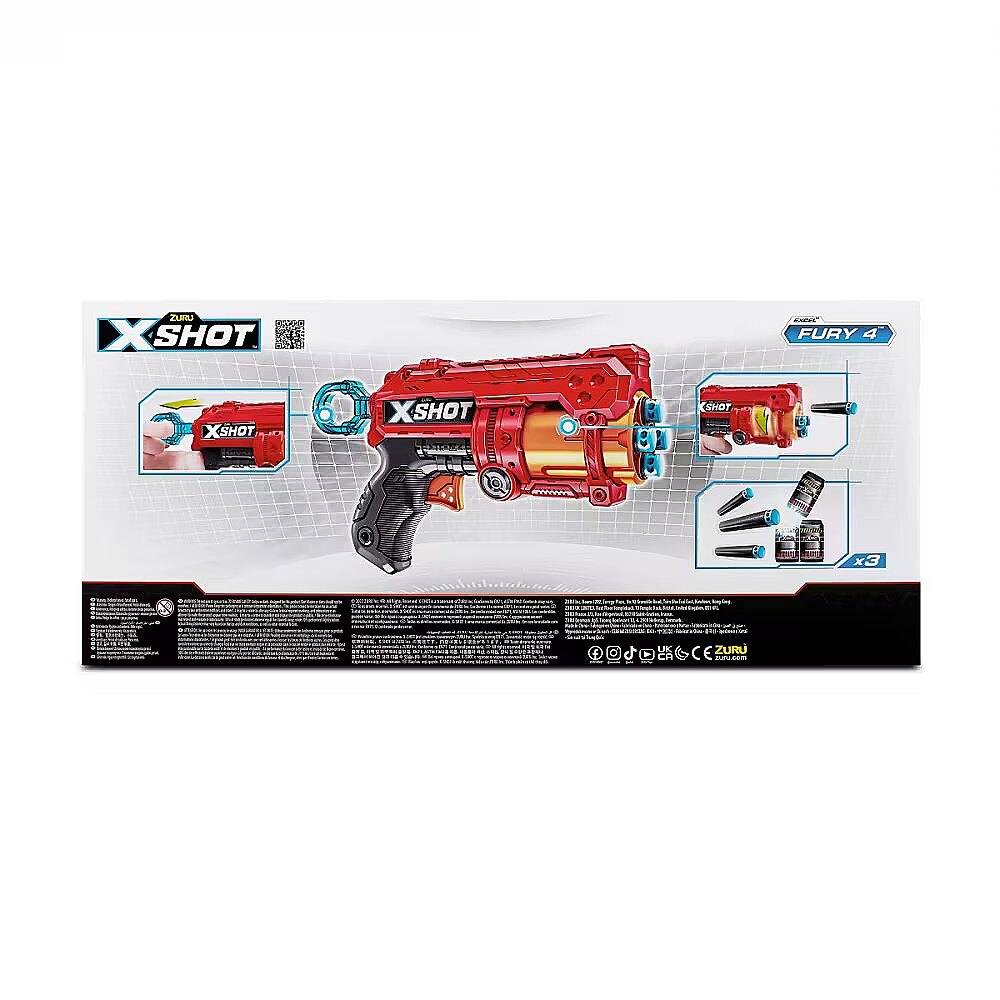 Accessories included - 2 x X-Shot Excel Fury 4 launcher 16 x X-Shot Foam Dart 3 x Training Target