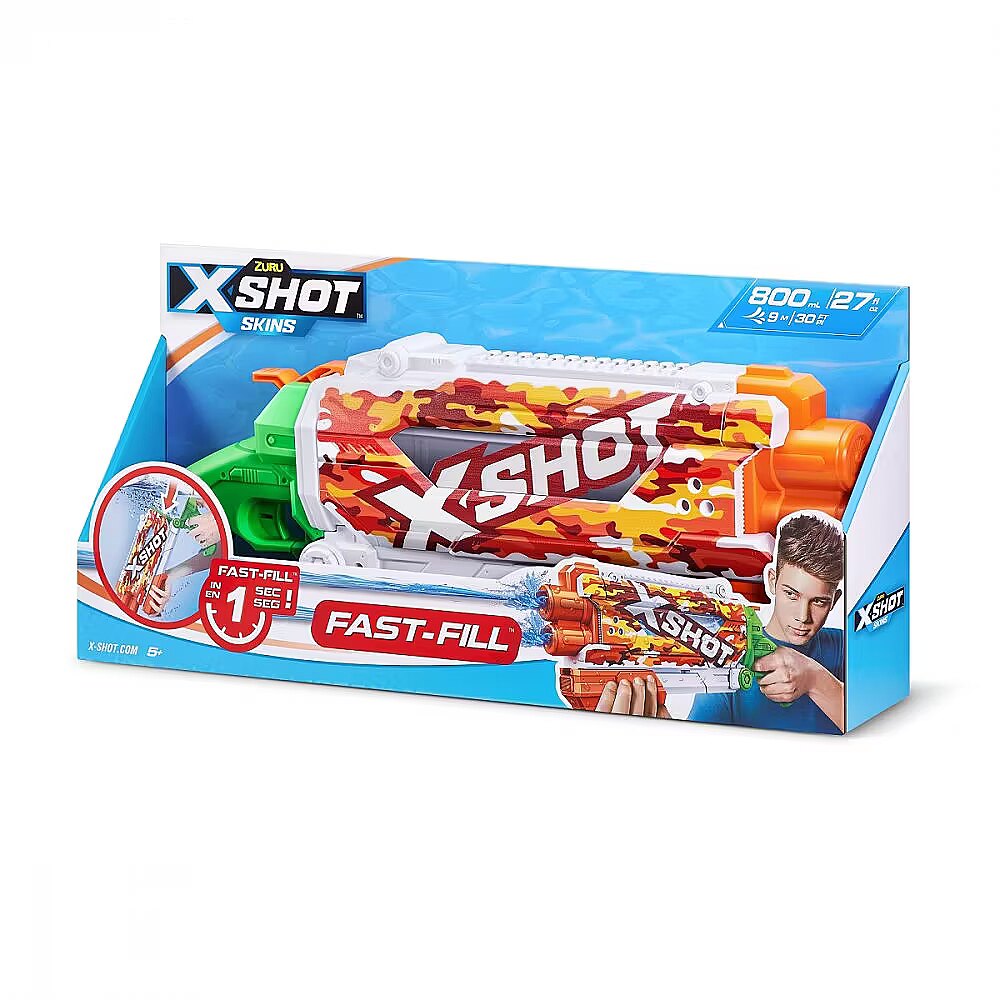 Description - ZURU X-Shot Pump Action Water Launcher Quick fill When X-Shot enters the fun, you can be sure that there will be no shortage of emotions! Especially when it comes to the Fast-Fill Pump Action water launcher! This colorful water blaster is an unrivaled anti-boredom weapon that fills up with water in just 1 second and then jumps right into the action! Innovative quick-seal technology combined with express fill means that the Pump Action water gun simply needs to be submerged, primed and closed, ready to go. The capacity of the tank is 800 ml, so your blaster will have enough ammunition to shoot a long stream of water up to 9 meters! X-Shot Fast-Fill Pump Action is 800 ml capacity and a 9-meter blasting field! You can fill this water blaster in just 1 second thanks to the innovative quick-sealing technology so you don't waste precious summer moments. Dip, fill and shut off and let the Pump Action Water Launcher do the rest! A water toy for the garden, the beach or a crazy party by the pool. Product for children over 5 years of age. With X-Shot Fast-Fill Pump Action you won't waste a moment of summer!