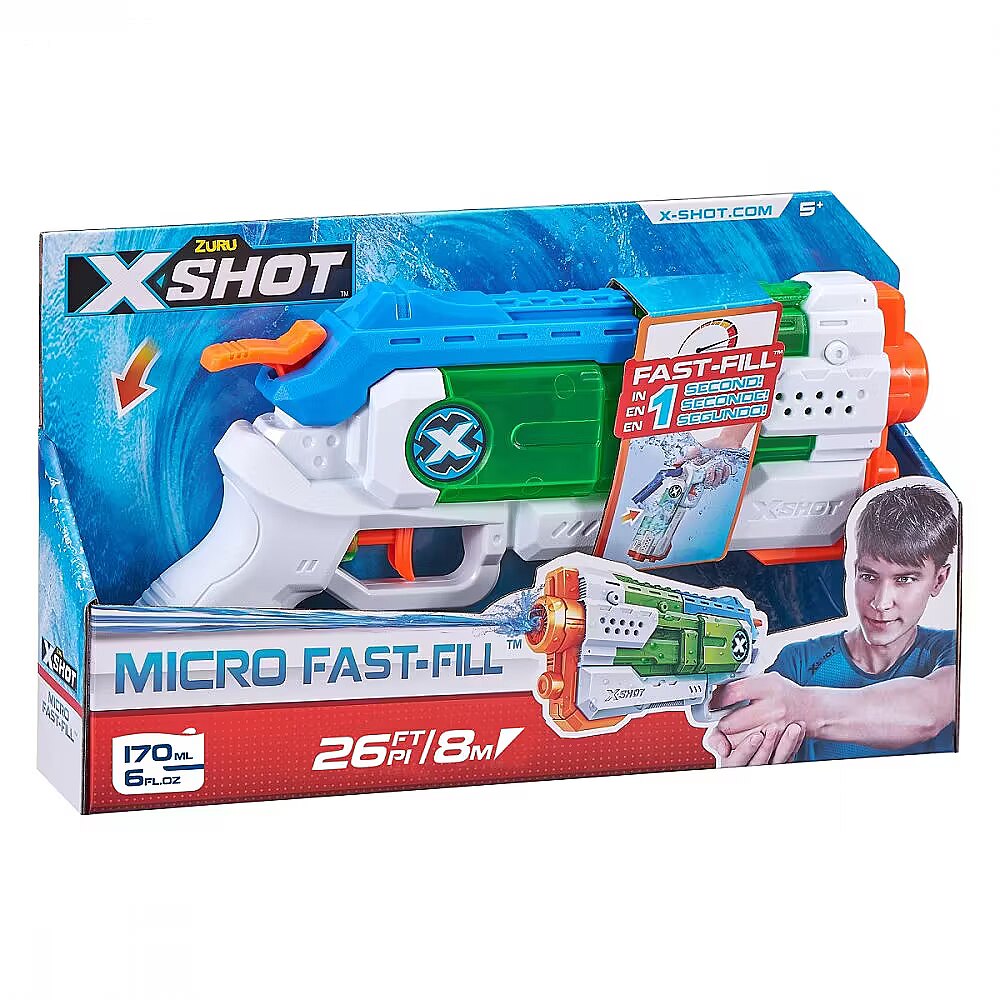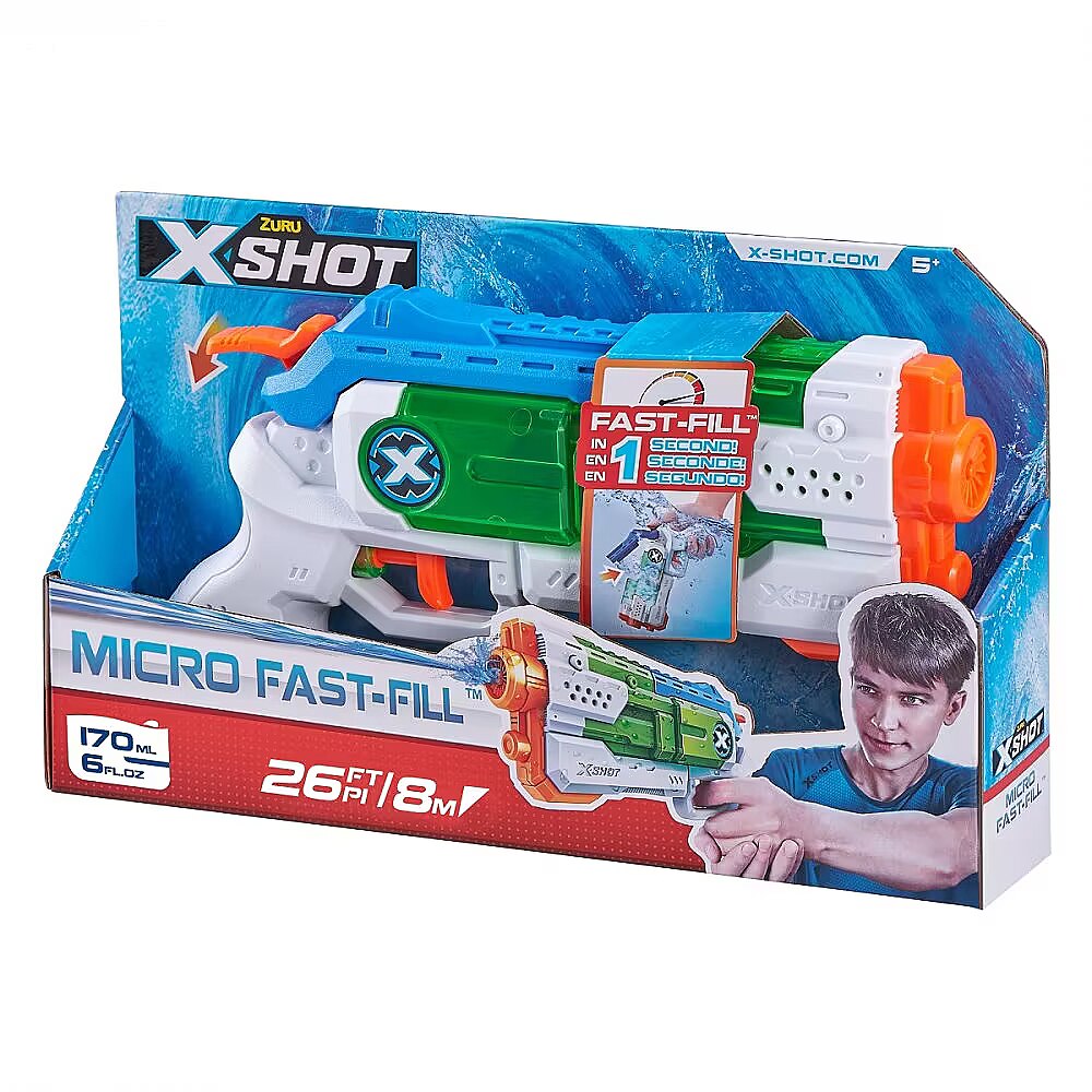 Description - ZURU X-Shot Fast Fill Micro Blaster Face boredom and take aim with the Micro Blaster X-Shot Fast Fill! Thanks to its size, this small water gun is super handy and extremely effective in all circumstances. Whether it's a backyard barbecue or a pool party, the X-Shot Fast Fill Water Launcher will provide a cool refreshment to anyone who enters its blast radius! There's no time to waste in a water battle, so the Micro Blaster comes with a 170ml tank and quick-fill function. Dip, pull, fill and release the latch - it's that simple and takes no more than 1 second! Measure and send water streams up to 8 meters! The Micro Blaster X-Shot Fast Fill fills with water faster than any other water blaster. It only takes 1 second to be ready for action! As much as 170 ml capacity for even longer fun! The water gun will flood enemies up to 8 meters away! Dip it in the water, pull it, inflate it and release the latch and the Micro Blaster seals itself for out-of-this-world fun!   Bet on the Micro Blaster X-Shot Fast Fill and forget about boredom! Different colors. The product is sent randomly, it is not possible to choose a specific model.