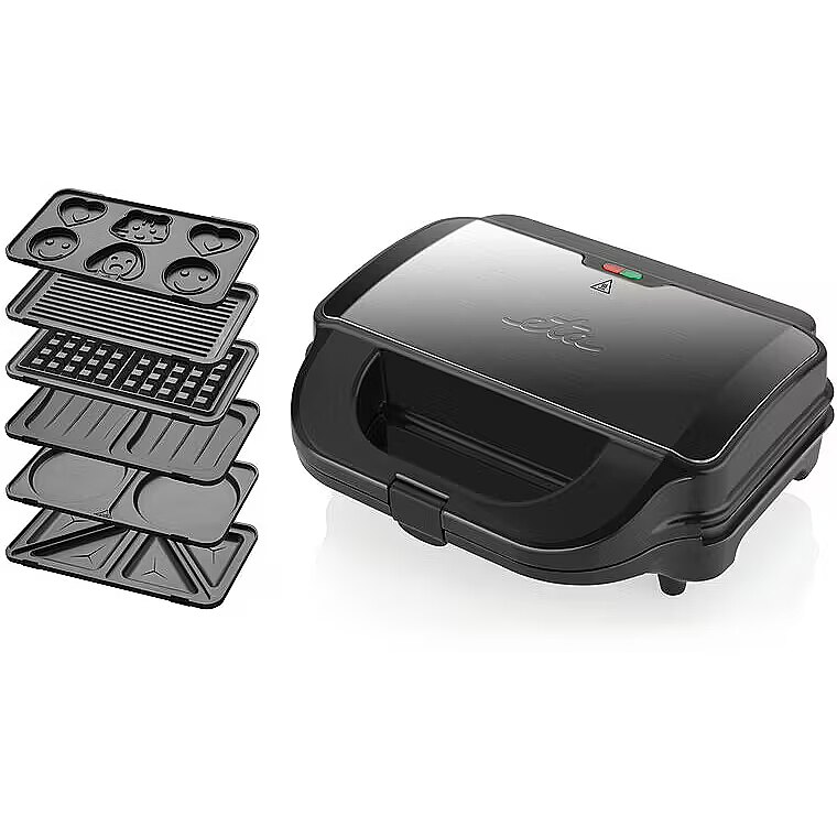 ShortDescription - Moc [W]: 900 | Kolor: czarny | 6 pary wymiennych płytek,grill, tosty, panini, gofry, naleśniki, ciastka dla dzieci