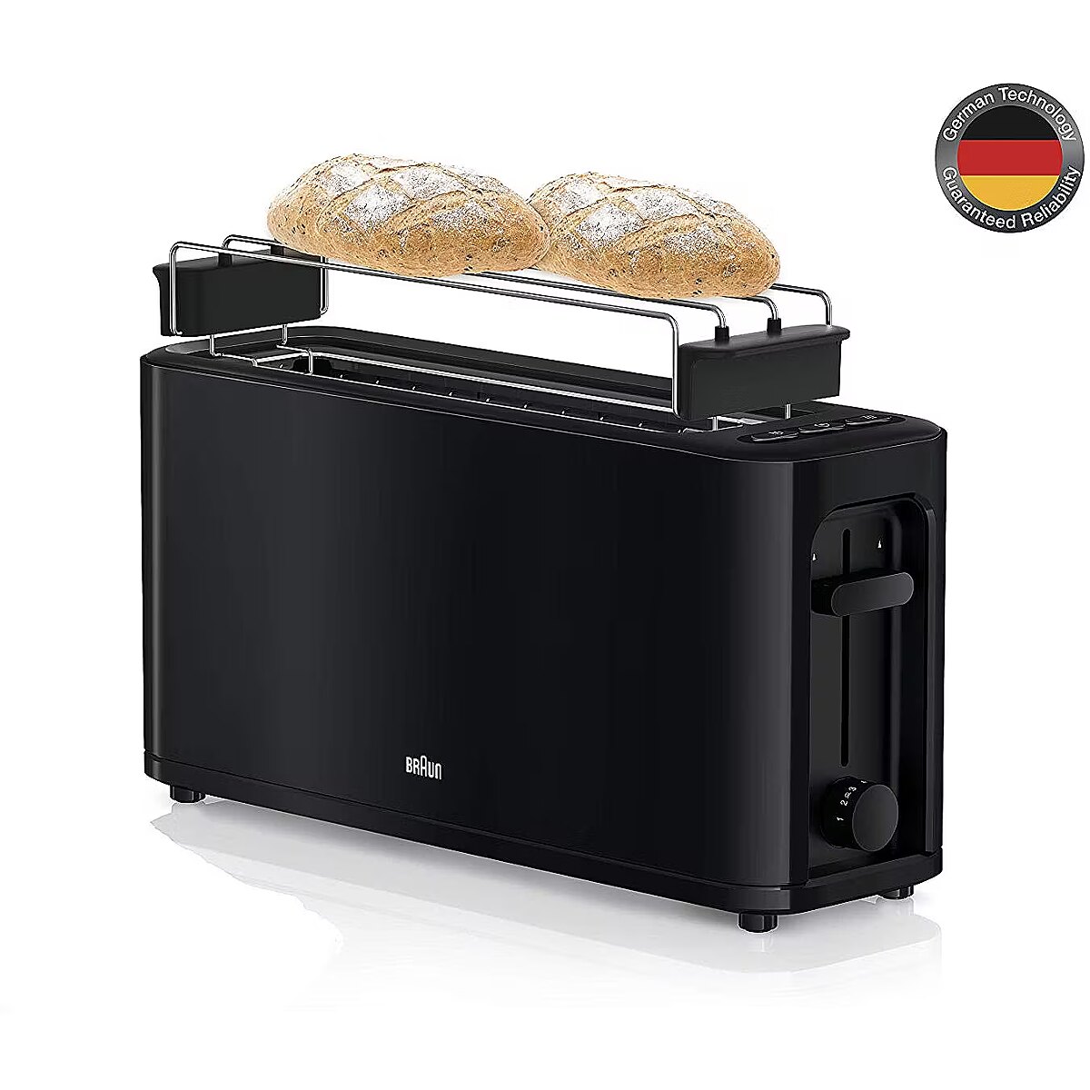 LongDesc - A Braun toaster is a real must-have on every breakfast table. It impresses with its striking modern design and is so easy and convenient to use. A Braun toaster comes with many extras and produces stunning results: from crispy toast to tasty buns.Comfort liftWith the comfort lift the bread can be moved up to a higher position and is kept there for safely retrieving.Variable browningWith the 7 different settings you can choose your preferred degree of browning, no matter what type of bread.Removable warming rackWarm or toast certain breads and pastries with this removable attachment.Removable crumb trayAll crumbs are collected in the tray and can easily be disposed.Wide slotExtra wide slots for toasting a big variety of breads.