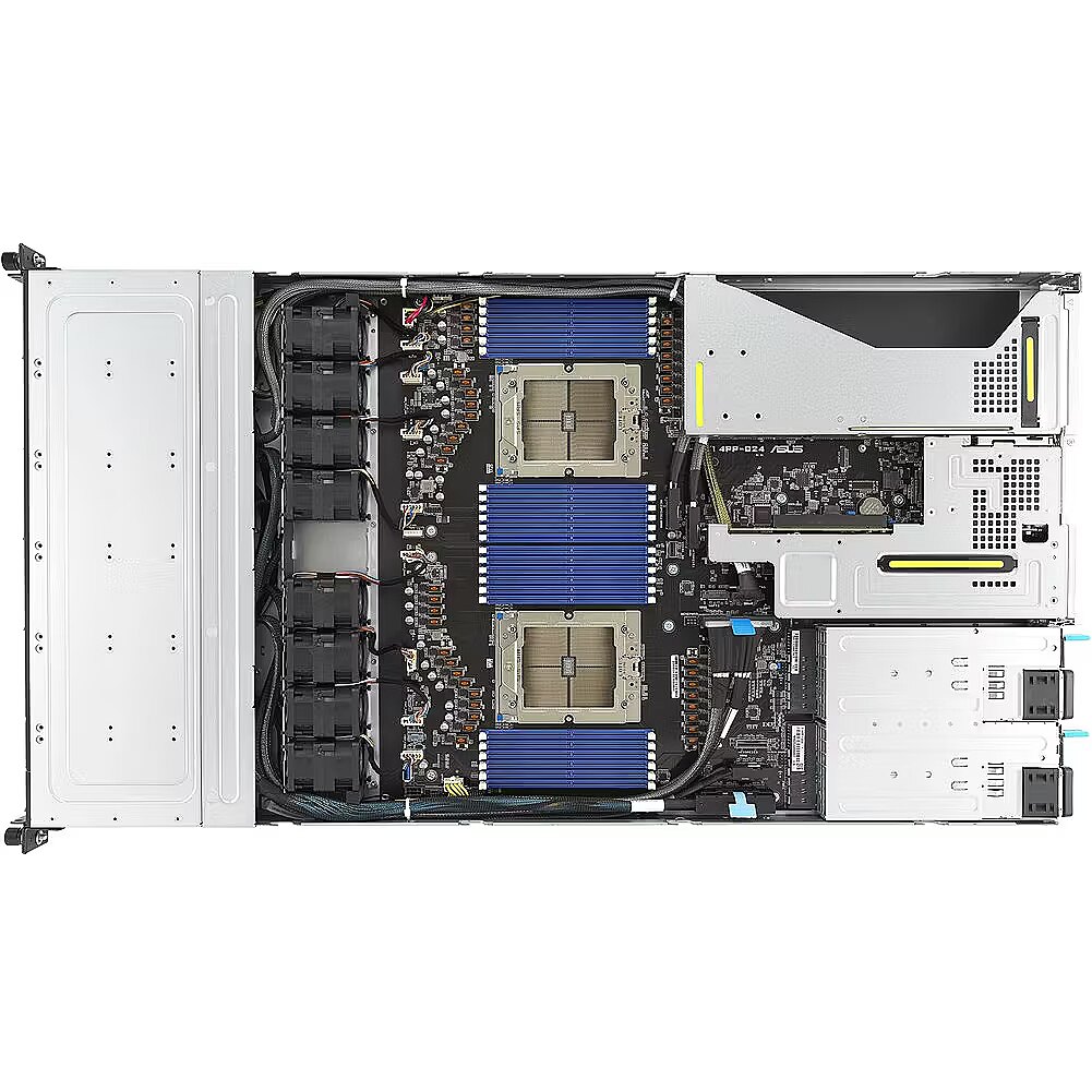 LongSummaryDescription - ASUS RS700A-E12-RS12U. Processor socket: Socket SP5, Processor manufacturer: AMD, Processor family: AMD. Supported memory types: DDR5-SDRAM, Supported DIMM module capacities: 32GB, 64GB, 128GB, Maximum RDIMM memory: 3.07 TB. Storage drive sizes supported: 2.5,M.2, Supported storage drive types: HDD & SSD, Supported storage drive interfaces: Serial ATA, Serial Attached SCSI (SAS). On-board graphics card model: Aspeed AST2600, On-board graphics card memory: 64 MB. Ethernet interface type: 10 Gigabit Ethernet, Gigabit Ethernet, Ethernet LAN data rates: 1000,10000 Mbit/s, LAN controller: Intel® I350-AM4, Intel X710-AT2