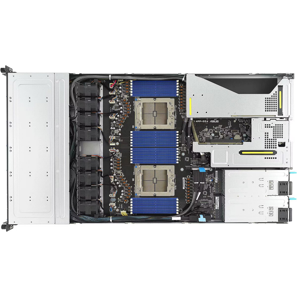 LongDesc - PCIe 5.0 ReadyFaster storage, graphics and networking capabilitiesPCI Express® (PCIe®) 5.0 delivers 32GT/s bandwidth, which is twice the speed of PCIe 4.0, and offers lower power consumption, better land scalability and backwards compatibility. ASUS servers are PCIe 5.0 ready with scalability design to satisfy the increasing workloads for modern data center.AMD EPYC™ 9004 Series ProcessorsThe 9004 Series EPYC CPUs amplifies the AMD history of x86 architecture innovations and record-breaking performance with next generation 5nm technology as well as introducing support for high performant DDR5 DIMMs and fast PCIe® Gen 5 I/O. EPYC 9004 CPUs support 12 memory channels with 2 DIMMs/channel capability, delivering the resources needed for memory hungry AI, ML, HPC, and large in-memory computations.CPU-balanced ArchitectureThe new AMD EPYC 9004 processors excel at providing full features and functionality for both dual-socket and single-socket platforms, but our new servers ASUS is introducing an CPU-balanced architecture to enable secure and optimal CPU-performance efficiency.This architecture extends the full bandwidth to either dual- or single-CPU configurations, enabling more computing capability and much-improved overall power efficiency for compute-intensive workloads. This architecture allows customers to take full advantage of bandwidth capabilities of the dual-CPU architecture with a single CPU, while offering the flexibility to upgrade later with the addition of a second CPU.World Records LeadershipASUS holds the most amount of records in dual-socket (2P) and single-socket (1P) on SPEC CPU 2017 benchmark and dominate the computing performance. These top performance results provide a useful insight into compute-intensive workloads on different computer systems, enabling our customers to reduce complexity, tackle challenging workloads and accelerate system validations.Computing PerformanceASUS servers feature Performance Boost technology to achieve the best server performance and agility by tuning servers to match the requirements of workloads, letting you gain greater control of your server environment. This technology improves workload throughput by maximizing processor frequency and boost power, ideal for timesensitive applications such as financial services or data center operations.Power EfficiencyASUS select servers achieved most power efficiency positions on the SPEC Power benchmark for energy efficiency and demonstrate to customers how they can achieve faster deployments and higher energy efficiency for their IT infrastructure.Scalable Storage SolutionThis server features scalable storage solutions to support maximum performance for data center flexibility, and enable industry-standard SAS/SATA/NVMe interfacing through Broadcom Tri-Mode RAID adapters for increased connectivity and security.Accelerating performancefor AI workloadsUp to one dual-slot GPUsThis server features multiple PCIe 5.0 slots to meet the demands of AI and high-performance computing (HPC) workloads, including supporting up to one dual-slot active or passive GPUs, and Xilinx Alveo accelerators. The scalable configurations in one 2U system provide optimized acceleration for workloads across cloud and on-premises data centers, and for hybrid cloud environments in financial computing, machine learning, computational storage, and data search and analytics.NVIDIA Omniverse3D design collaboration and simulationASUS solutions for Omniverse give your organization a comprehensive package for Omniverse Enterprise. The diverse portfolio allows us to tailor a package to be fully compatible with your design environment and needs. As our long-term partnership with NVIDIA and ISV certifications, we’re fully invested in the Omniverse ecosystem and ready to help our partners develop new segments on this exciting platform.Front Bezel ProtectionASUS servers are designed with optional front bezel with a lock that has been tested and supported by our technical team to avoid accidental usage or removal and ensure your data center is fully safe.Server-management SolutionRemote server managementASUS ASMB11-iKVM is the latest server-management solution from ASUS, built upon the ASPEED 2600 chipset running on the latest AMI MegaRAC SP-X. The module provides various interfaces to enable out-of-band server management through WebGUI, Intelligent Platform Management Interface (IPMI) and Redfish® API.Streamline IT operations via a single dashboardASUS Control Center (ACC) is remote IT management software designed for monitoring your hardware and software IT assets and inventory status and enabling seamless remote BIOS configurations and updates, efficient IT diagnostics and troubleshooting and enhanced security with Hotfix updates, allowing easier server management for any IT infrastructure.Enhanced SecurityHardware Root-of-Trust SolutionDetect, recover, boot and protectASUS servers integrate PFR FPGA as the platform Root-of-Trust solution for firmware resiliency to prevent from hackers from gaining access to infrastructure. ASUS security solutions are fully compliant with the 2018 National Institute of Standards and Technology (NIST) SP 800 193 specification.Trusted Platform Module 2.0ASUS servers also include support Trusted Platform Module 2.0 (TPM 2.0) to secure hardware through integrated cryptographic keys and offer regular firmware update for vulnerabilities.