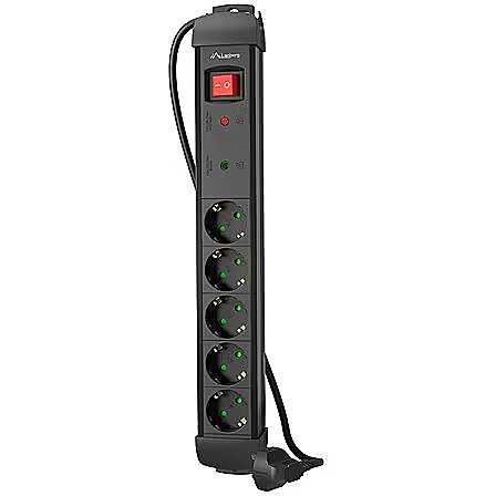 Description - Surge Protector Power Strip with Varistor Lanberg SP1-05F-0300-BK Discover the next generation of protection for your electronic equipment with the Lanberg SP1-05F-0300-BK surge protector power strip. Equipped with advanced protection technologies, this premium strip with a 3m cable provides effective protection for all connected electrical devices. With a 10A fuse, three varistors with a total energy absorption of 555J, the Lanberg strip is the perfect solution for anyone who values safety and reliability. Provide yourself with a high degree of surge protection against storms or disruptions in the electrical network, preventing failures in your home, office or workshop. 5 sockets with 10 A fuse The Lanberg SP1-05F-0300-BK power strip uses a 10 A fuse with a maximum load of 2500 W and an extremely fast response time of only 10 nanoseconds. This short-circuit protection function guarantees immediate response to any dangerous changes in current flow, protecting your devices and the electrical network from potential damage. The power strip has, among other things, an illuminated safety switch, five mains sockets with grounding and built-in current path shutters. The LED informs the user about the current protection status, which is a practical addition that increases the functionality of the Lanberg power strip. Surge protector with varistor When choosing a surge protector power strip, it is worth paying attention to whether it is equipped with mechanisms that effectively reduce surges. Each surge protector with a varistor has a higher degree of protection than a standard extension cord, but the Lanberg SP-1 filter strip provides an above-average response to voltage surges. The advanced surge protection functions in the Lanberg SP1-05F-0300-BK strip are the result of using three varistors with a total energy absorption of 555 J. Thanks to this, the SP1 surge protector effectively protects against dangerous voltage surges in the network, protecting not one, but all three lines (G-N, G-L, N-L). A surge protector with many functions In addition to high-class surge and short-circuit protection, the Lanberg SP1-05F-0300-BK strip also offers a number of practical conveniences, adapted to various applications. Child protection of sockets is a market standard that provides additional safety for the youngest users. Integrated mounting holes allow easy installation of the strip in both vertical and horizontal position on the wall or furniture. In addition, the well-thought-out design of the strip allows you to conveniently roll up the unused cable around it and conveniently connect power supplies and other devices, avoiding tangled cables.   What does a surge protector power strip give you? Buying the Lanberg SP1-05F-0300-BK surge protector is the best investment in protecting your sensitive electronic devices. Desktop computers, servers, TVs, hi-fi audio equipment and other similar devices are particularly vulnerable to damage caused by voltage fluctuations. With the Lanberg SP-1 surge protector, you can enjoy the safety and peace of mind of knowing that your valuable devices are protected against unforeseen events in the power grid and, for example, short circuits during charging. In our offer you will find a wide selection of products with different cable lengths, number of sockets and other parameters.