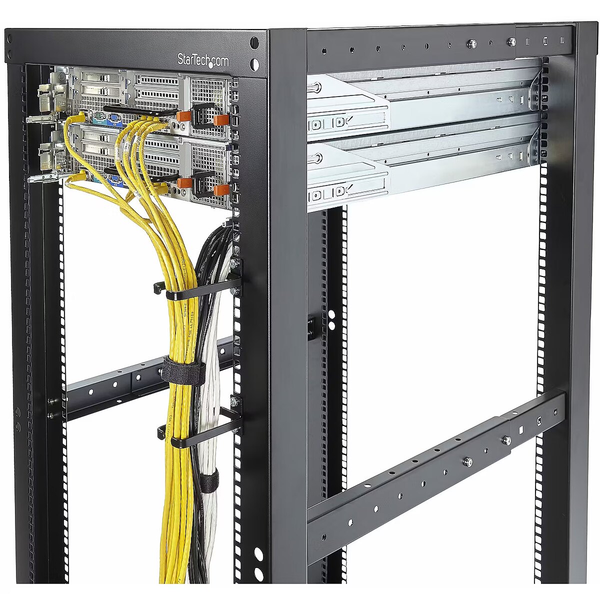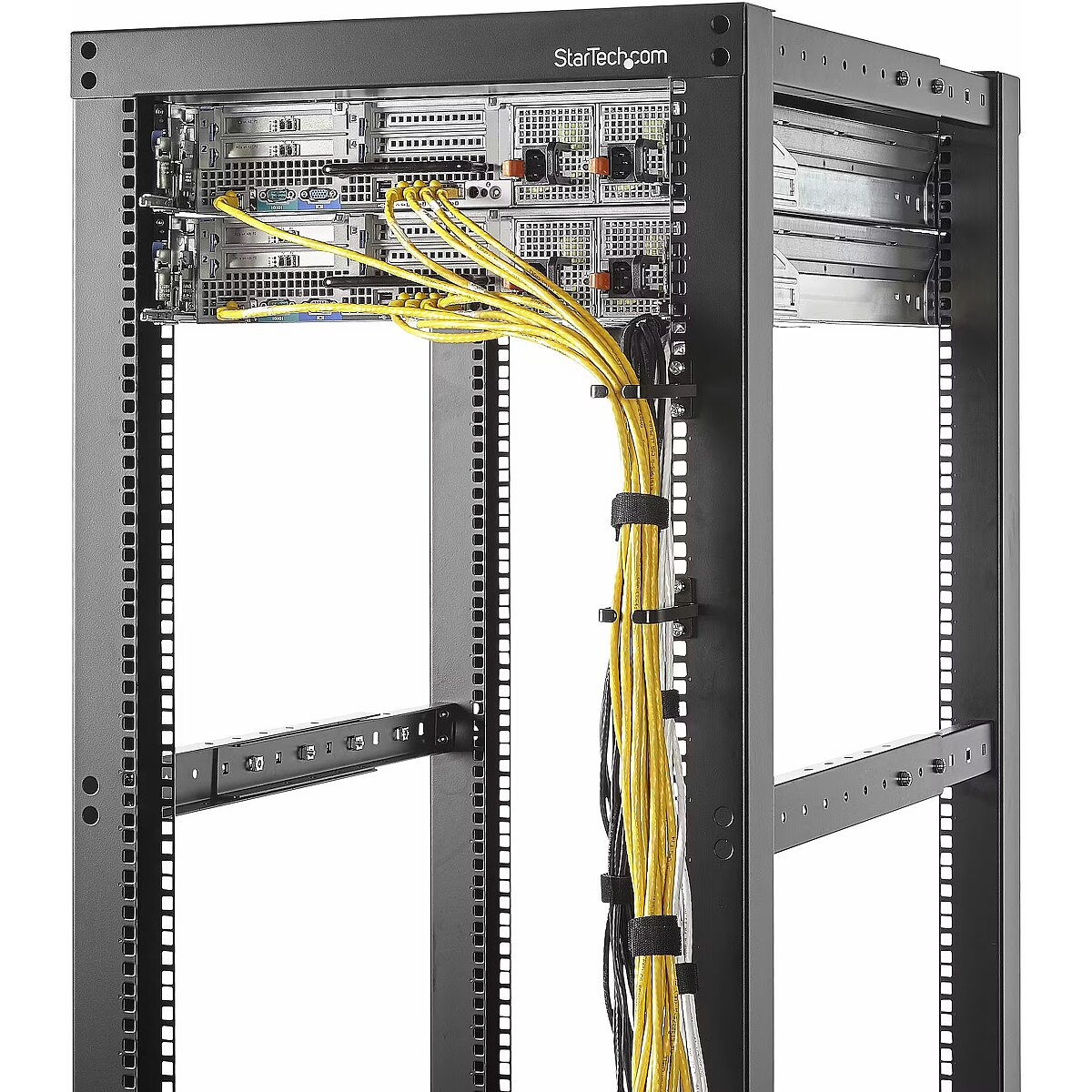LongDesc - Add vertical cable management to a standard server rack or cabinetInstall this set of five 1U Vertical Cable Management Hooks internally/externally along the posts of a standard 19" 2/4-post server rack, to organize power and network cables.Enhance Cable ManagementThe cable D-ring organizer features a 0.4in (11mm) opening to effortlessly insert bundled cables. Install multiple cable rings along the rack posts to improve airflow and minimize the port and connector strain.Combine this cable manager with accessories (sold separately) such as hook and loop ties (HKLP100), plastic ties (CBMZT6BK), or a cable lacing bar (12S-CABLE-LACING-BAR).CompatibilityThis cable guide for racks and cabinets is constructed of steel and is compatible with any rack post that features 1U standard rack spacing. The powder-coated finish ensures durability, and the smooth surface prevents snagging and maintains cable integrity.The StarTech.com Advantage