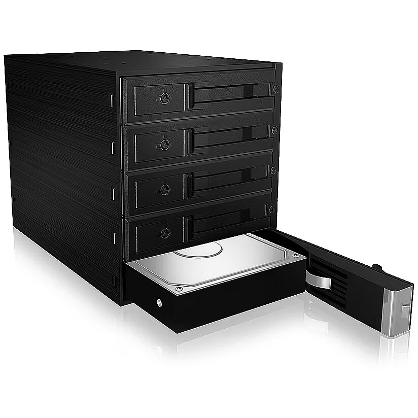 LongDesc - Stress resistantThe IB-56X Series is built for heavy duty. The best available materials were used in this enclosure which makes it the ideal 3.5" HDD solution for demanding environments. for additional security, a lock was added.Cool & silentThe high quality metal dissipate the created heat by passive convection to the environment. The active convection is done using an 80 mm fan. The big fan swirls slowly which makes it quieter.Always up to dateUp to five 3.5" SATA/SAS HDDs find a home in this backplane. Not even SAS hard disks have to stay out in the cold. Optical and auditory signals alert regarding the HDD and fan state. The temperature alarm signal can be set on three possibilities - 55° C, 60° C, 65° C.