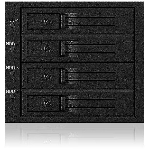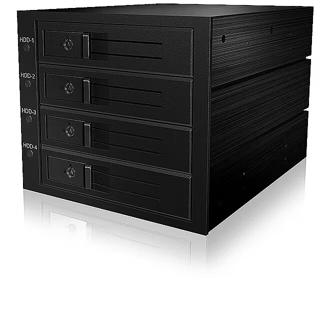 LongDesc - Stress resistantThe IB-56X Series is built for heavy duty. The best available materials were used in this enclosure which makes it the ideal 3.5" HDD solution for demanding environments. for additional security, a lock was added.Cool & silentThe high quality metal dissipate the created heat by passive convection to the environment. The active convection is done using an 80 mm fan. The big fan swirls slowly which makes it quieter.Always up to dateUp to four 3.5" SATA/SAS HDDs find a home in this backplane. Not even SAS hard disks have to stay out in the cold. Optical and auditory signals alert regarding the HDD and fan state. The temperature alarm signal can be set on three possibilities - 55° C, 60° C, 65° C.
