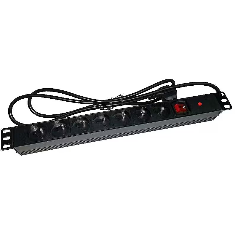 Other features - Standard: 1U/19" Gniazda: 7 x CEE 7/5 Wtyk: 1 x CEE 7/7 Obudowa korpusu: aluminiowa Materiał gniazd: samogasnące tworzywo ABS Prąd znamionowy urządzenia: 16A Maksymalne obciążenie: 3500W Długość przewodu zasilającego: 1.8m Podświetlany wyłącznik sieciowy: tak - fizyczne zabezpieczenie przed przypadkowym wyłączeniem Dodatkowe informacje: zabezpieczenie przeciwprzeciążeniowe Wyposażenie dodatkowe: zestaw śrub mocujących wraz z koszyczkami i podkładkami
