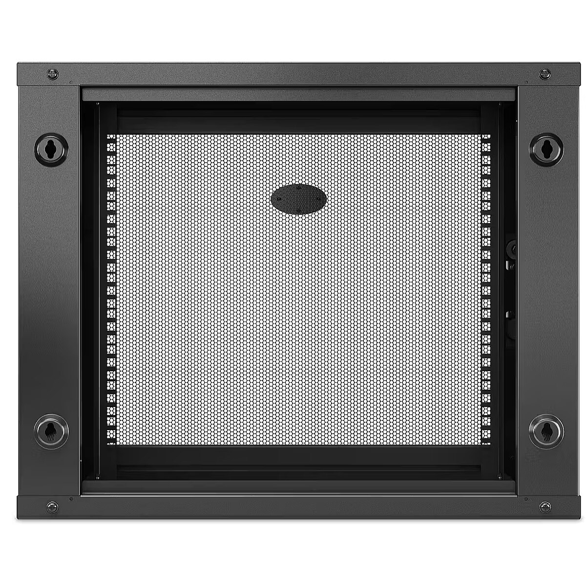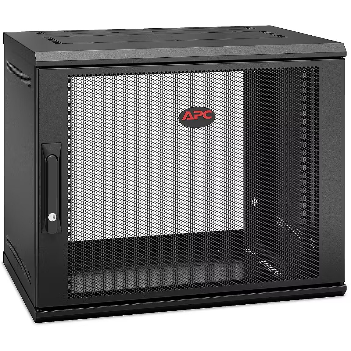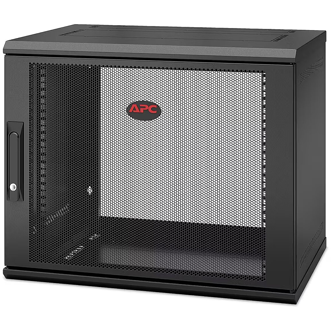 LongDesc - Product descriptionThis compact lockable rack is suitable for all kinds of 19 inch IT/network equipment. With 9U internal height and two adjustable rack mount styles, you can easily mount rack-mountable devices (max 329mm deep). Due to its limited dimensions and weight (13.02KG), it is easy to mount on the wall. Because the door can be mounted both right and left opening, it fits in almost any environment.Easy installationThis APC patch cabinet is delivered pre-assembled, making this rack easy and quick to install.PlacementThis rack can be mounted on the wall as a patch, edge or network cabinet using 4 recesses at the rear (suitable for up to max m6 bolts). However, because its door is free from the ground, this server rack can also be placed upright. This makes it suitable for many environments. Installation materials for wall mounting are not included.Cable and accessory integrationThe bottom and roof of this patch cabinet are pre-treated, see photo top, so that they can be easily adjusted and thus made suitable as a cable outlet or for installing a patch panel (AR8452).Easy assemblyThis wall-mounted server rack is designed for quick and easy assembly and all necessary materials and tools for assembly except a spirit level are included, see manual. A template for wall mounting is also included.Multiple sizesThe assembled black NetShelter WX wall enclosures are available in three heights and two depths, 6U (AR106xxx), 9U (AR109xxx) and 12U (AR112xxx). All six can handle a maximum static load of 90.7KG.Rackmount stylesThe two rackmount styles can be mounted in six positions in the rack and at each position it is possible to fine-tune the exact position up to 23 mm, see documentation.SafetyMounted network equipment in the rack is safe, because the door at the front is equipped with a lock. Two keys are included.WarrantyThe standard factory warranty is five years.Ideal for retail, healthcare, and educational facilities, this wall mount rack offers an efficient solution for deploying server and networking equipment for edge computing applications. This rack enclosure is wall mountable, ideal for areas with limited floor space, and is designed specifically for servers and network switches and patch panels. The cabinet's door is reversible and is compatible with APC's Netbotx security upgrade to provide remote access, video surveillance, and environmental monitoring (sold separately). Optional 120V fan tray can be top or bottom mounted (sold separately) Both the top and bottom feature knockouts of 1/2U mounting space for accessories. And several APC Smart-UPS models low-profile provide easy UPS integration and mounting. 6U Wall mount cabinet, mounting depth range of 2.87 to 20.8 inches, 200lb weight capacity, 19 rack width, ships fully assembled, ventilated with accessory integration options, 5 year APC warranty.