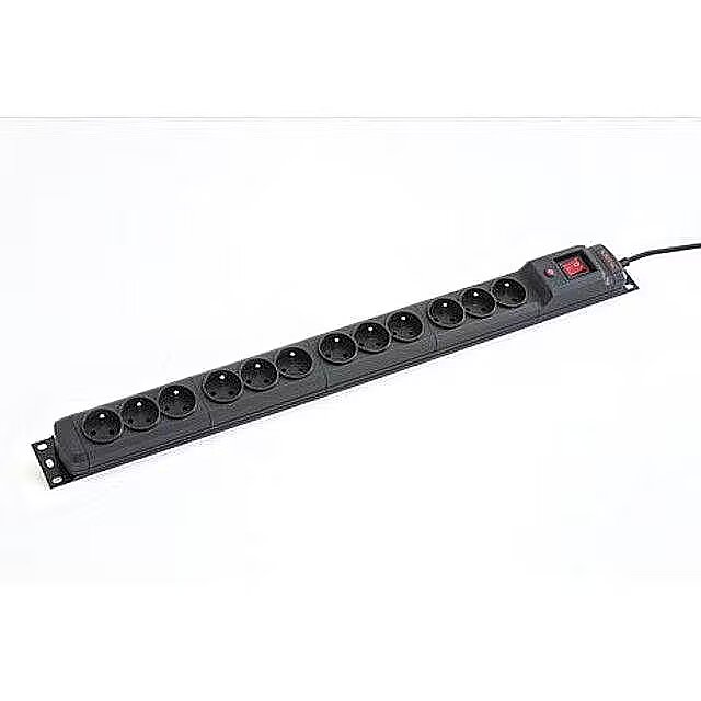 Description - Power strip 5m multi M12 black M12 / 50 / CZ The Multi M12 is one of the devices from the Multi family with the greatest number of sockets. It has 12 protected grounded sockets and an automatic, time-lag fuse. It can work independently or thanks to metal fasteners in 19 cabinets as an integral protection of the power supply for devices installed in it. A large number of sockets and easy mounting to the ground make the Multi M12 a perfect solution for reputable companies as equipment for assembly lines, production tables or conference rooms. The Multi M12 has built-in protective covers of the mains sockets.