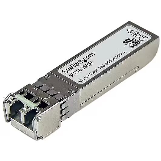 LongDesc - 10 Gbps | Multi Mode Fiber | LC | 300 m (984 ft) | Lifetime WarrantyThe SFP10GSRST is a Cisco SFP-10G-SR compatible fiber transceiver module that has been designed, programmed and tested to work with Cisco® brand switches and routers. It delivers dependable 10GbE connectivity over fiber cable, for 10GBASE-SR compliant networks, with a maximum distance of up to 300 m (984 ft.).Technical Specifications:• Wavelength: 850 nm• Maximum Data Transfer Rate: 10 Gbps• Type: Multimode Fiber• Connection Type: LC Connector• Maximum Transfer Distance: 300 m (984 ft.)• MTBF: 1,967,709 hours• Power Consumption: Less than 1.2 Watts• Digital Diagnostics Monitoring (DDM): YesThis SFP+ fiber module is hot-swappable, making upgrades and replacements seamless by minimizing network disruptions.StarTech.com SFPsAll StarTech.com SFP & SFP+ transceiver modules are backed by a lifetime warranty and free lifetime multilingual technical support. StarTech.com offers a wide variety of SFP modules and direct-attach SFP cables, providing the convenience and reliability you need to ensure dependable network performance.The StarTech.com Advantage