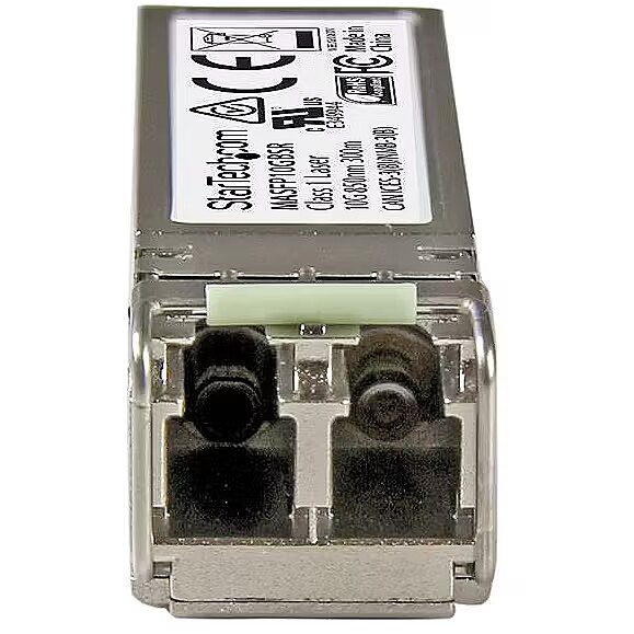 LongSummaryDescription - StarTech.com Cisco Meraki MA-SFP-10GB-SR Compatible SFP+ Transceiver Module - 10GBASE-SR~Cisco Meraki MA-SFP-10GB-SR Compatible SFP+ Module - 10GBASE-SR - 10GbE Multimode Fiber MMF Optic Transceiver - 10GE Gigabit Ethernet SFP+ - LC 300m - 850nm - DDM Cisco Meraki MS225, MX400, MS250. SFP transceiver type: Fiber optic, Maximum data transfer rate: 10000 Mbit/s, Interface type: SFP+. Product colour: Silver, Housing material: Aluminium, Mean time between failures (MTBF): 1967709 h. Power consumption (typical): 1.2 W. Compliance certificates: CE, RoHS. Width: 13.9 mm, Depth: 54 mm, Height: 12.6 mm