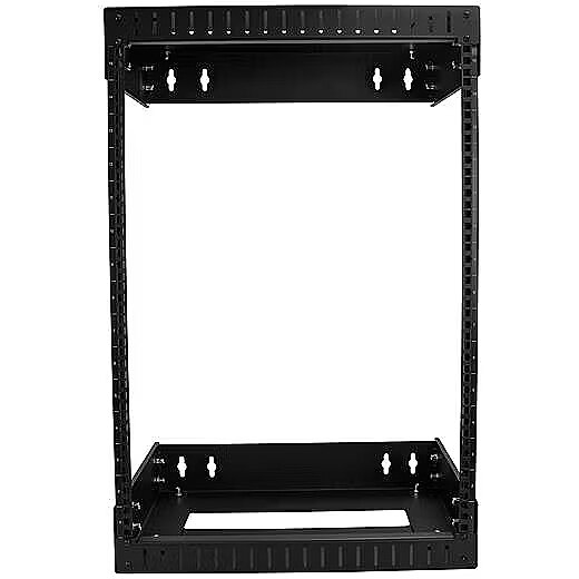 LongDesc - Mount your network and telecommunications equipment with the convenience of adjustable depthThis open frame wallmount server rack provides 15U of storage, helping you to save space and stay organized. The equipment rack features an adjustable depth and can hold a total of up to 198 lb (90 kg).Accommodate Larger DevicesThe open frame rack adjusts from 12 to 20 inches (30.4 to 50.8 cm) to accommodate larger data, network, and telecommunication devices. The above-average depth also gives you the option to mount shelves and other accessories.Free up Floor SpaceWhen space is limited you can wall-mount the open-frame rack in a server room, office, or above a doorway, to expand your workspace and ensure your equipment is easy to access.Keep Equipment Cool and AccessibleThe rack's open frame design promotes passive cooling; ensures easy access to your rack-mounted equipment and makes it simple to configure mounted devices, which saves you time.Easy, Hassle-Free InstallationWith an adjustable depth as low as 12 inches (30.4 cm), this network rack is perfect for smaller spaces. It's easy to assemble and features wall-mounting holes that are spaced 12 and 16 in. apart, making it suitable for mounting on almost any wall, based on North American wall-frame stud-spacing standards.The StarTech.com Advantage