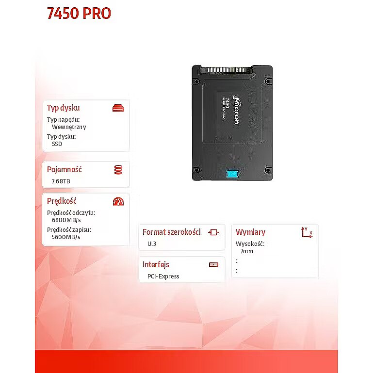 Micron SSD drive 7450 PRO 7680GB NVMe U.3 7mm Single Pack