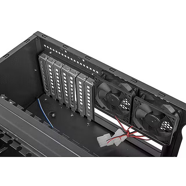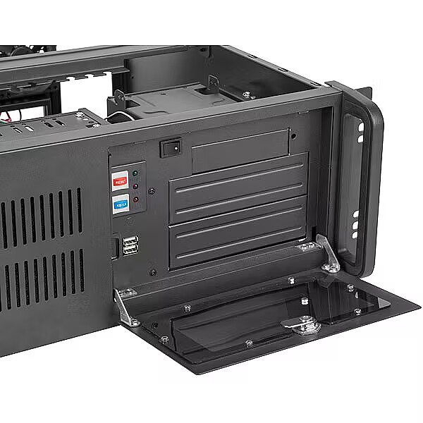 Other features - - Height: 4U - Sheet thickness: 1.0 mm - Material: SPCC - Buttons: power, reset, keyboard lock (KB-LK) - LED diodes: power supply, reset, keypad lock (KB-LK) - Number of expansion card slots: 7 - Expansion card slot type: standard PCI plugs - Working temperature: 0-50°C - Storage humidity: 5-95% - Removable front dust filter (included) - Lockable front panel (keys included) - Number of screws required: 8 - Mounting rails: 18" (optional)