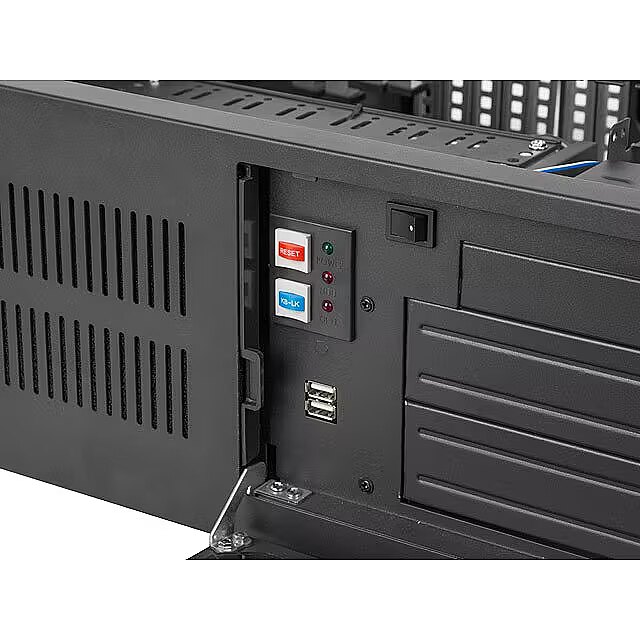 ShortDescription - Rack 19" 4U | czarna | bez zasilacza | 2 x USB 2.0 | 430mm x 450mm x 177mm | 2 x wen 80mm | 1x wen 120mm