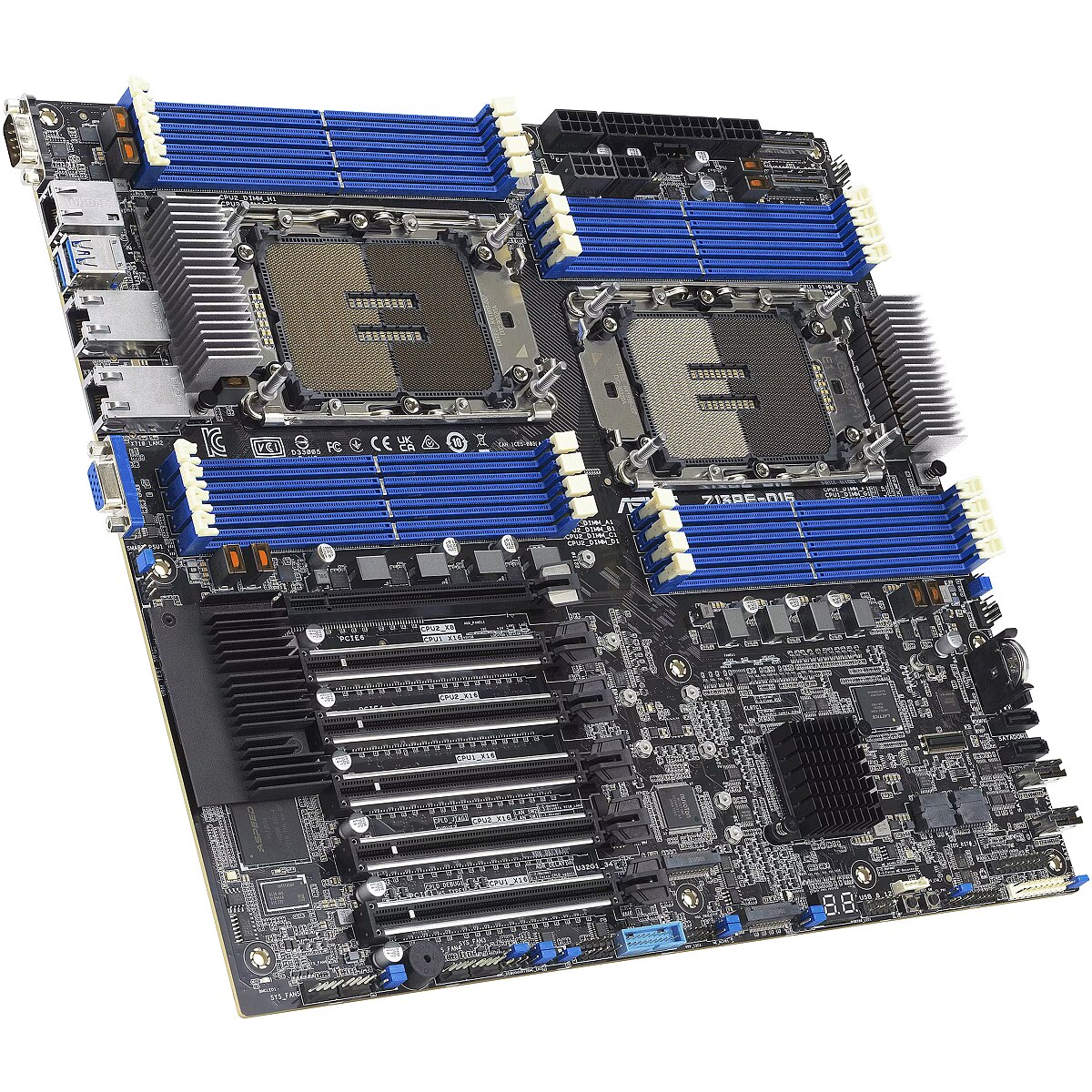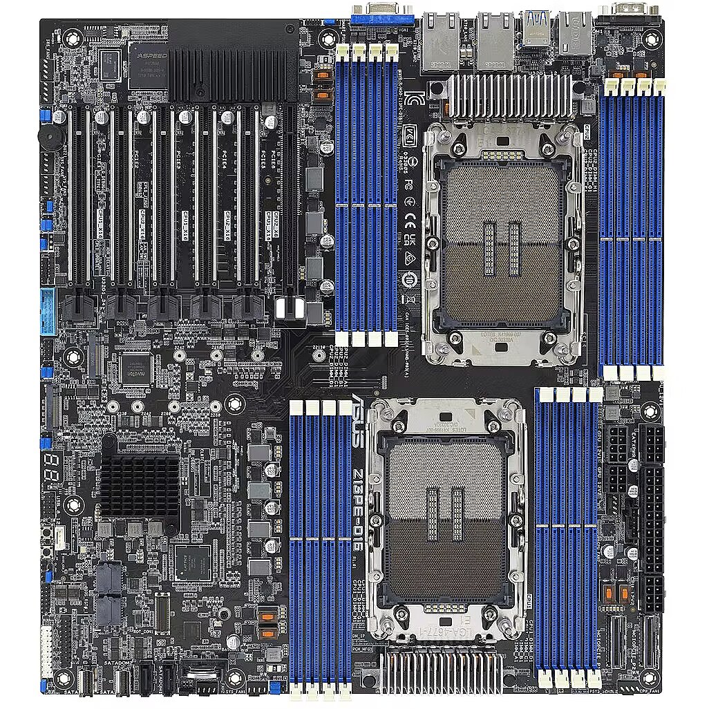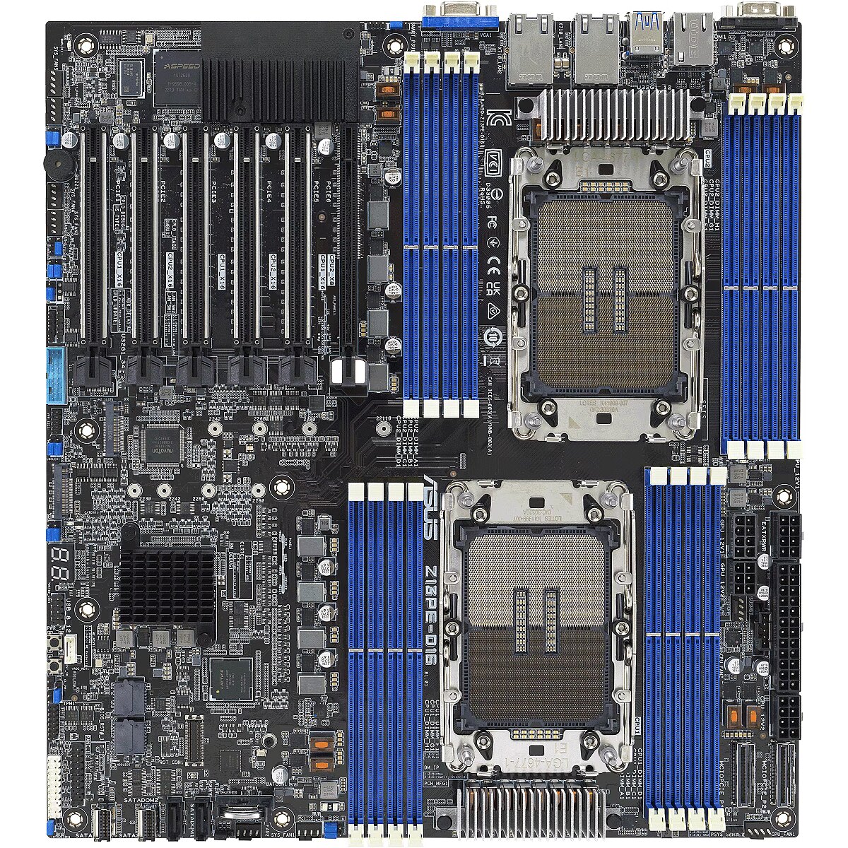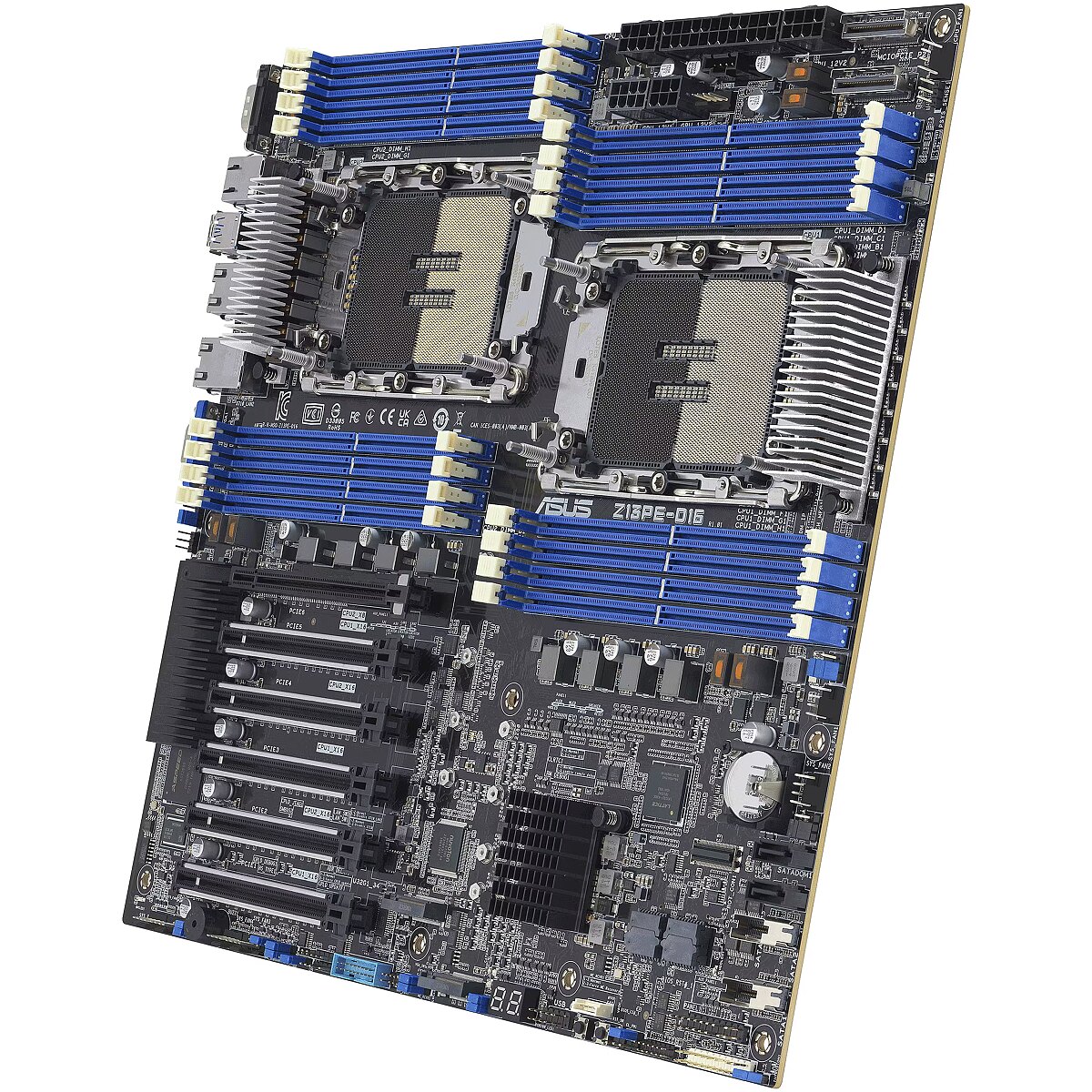 LongDesc - Server motherboard for dual 5th Gen Intel® Xeon® Scalable processors, with single-CPU support for three PCIe cards, 16 DIMM DDR5, dual 10 Gbps LAN and integrated ASUS ASMB11-iKVM.Powered by 5th Gen Intel® Xeon® Scalable processors5th Gen Intel® Xeon® processors unleashes up to 21% average general-purpose performance gain, significantly improving AI inference and training, all via the drop-in-compatible LGA-4677 socket. This innovation powerhouse accelerate AI, HPC, Analytics, Networking, Storage and offer eight DDR5-5600 memory channels for up to 2 TB capacity, 80 PCI Express® 5.0 lanes with CXL 1.1 support, and a 350 W TDP for 1P and 2P configurations — ready for the future of computing.CPU-balanced ArchitectureThe new 5th Gen Intel Xeon Scalable Processors excel at providing full features and functionality for both dual-socket and single-socket platforms. The ASUS Z13PE-D16 goes one step further by introducing an CPU-balanced architecture to enable secure and optimal CPU performance and efficiency.This architecture extends the full bandwidth to either dual- or single-CPU configurations, enabling more computing capability and much-improved overall power efficiency for compute-intensive workloads.When operating with a single CPU, it can support up to three PCIe cards, signifying that this motherboard is a cost-effective solution for small to medium-sized enterprises or budget-conscious users. Without the need for excessive PCIe slots, hardware costs can be controlled more effectively. Furthermore, the Z13PE-D16 motherboard is particularly suitable for specific workloads that require only limited PCIe expandability. Whether you need to optimize your configuration or simply require a few additional PCIe cards, the Z13PE-D16 offers simplified setup and management, ensuring efficient operation. Whether you are operating a small to medium-sized enterprise, managing a budget-sensitive data center or seeking solutions tailored to specific applications, the ASUS Z13PE-D16 server motherboard can meet your needs, delivering exceptional performance and cost efficiency.Dual Intel 10GBase-T Ethernet with teaming supportThe Z13PE-D16 provides dual 10-gigabit ultra-high-speed ports, vastly outperforming traditional gigabit Ethernet. This speed enhances data-traffic handling, thereby improving application performance. Additionally, it ensures reliability through teaming support, where multiple network interface cards (NICs) combine for enhanced redundancy, minimizing service interruptions.Enhanced IT-infrastructure managementThe Z13PE-D16 features optional support for iKVM function and ASUS Control Center, offering comprehensive out-of-band and in-band management features tailored for small and mid-size businesses.The ASUS ASMB11-iKVM is the latest server-management solution from ASUS, built upon the ASPEED 2600 chipset running on the latest AMI MegaRAC SP-X. This module provides various interfaces to enable out-of-band server management through WebGUI, Intelligent Platform Management Interface (IPMI) and the Redfish® API.ASUS Control Center (ACC) is remote IT management software designed for monitoring your hardware and software IT assets and inventory status. It enables seamless remote BIOS configurations and updates, efficient IT diagnostics, troubleshooting and enhanced security with hotfix updates, allowing easier server management for any IT infrastructure.