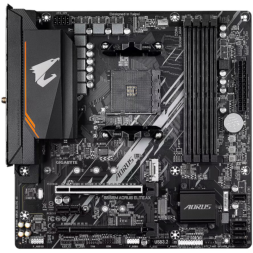 Title - GIGABYTE B550M AORUS ELITE AX Motherboard - AMD Ryzen 5000 CPUs, 5+3 Phases VRM, up to 4733MHz DDR4, 1xPCIe 4.0 + 1xPCIe 3.0 M.2, Wi-Fi 6E, 1GbE LAN, USB 3.2 Gen 1