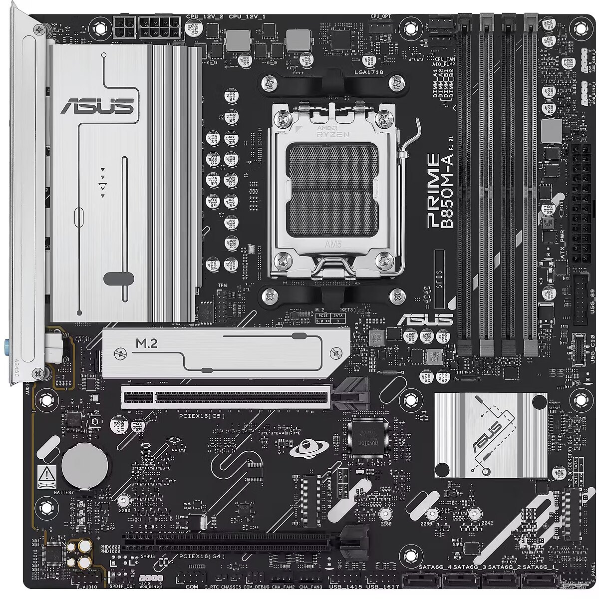 ShortSummaryDescription - ASUS PRIME B850M-A-CSM, AMD, Socket AM5, AMD Ryzen 7000 Series, AMD Ryzen 8000 Series, AMD Ryzen 9000 Series, Socket AM5, DDR5-SDRAM, 256 GB