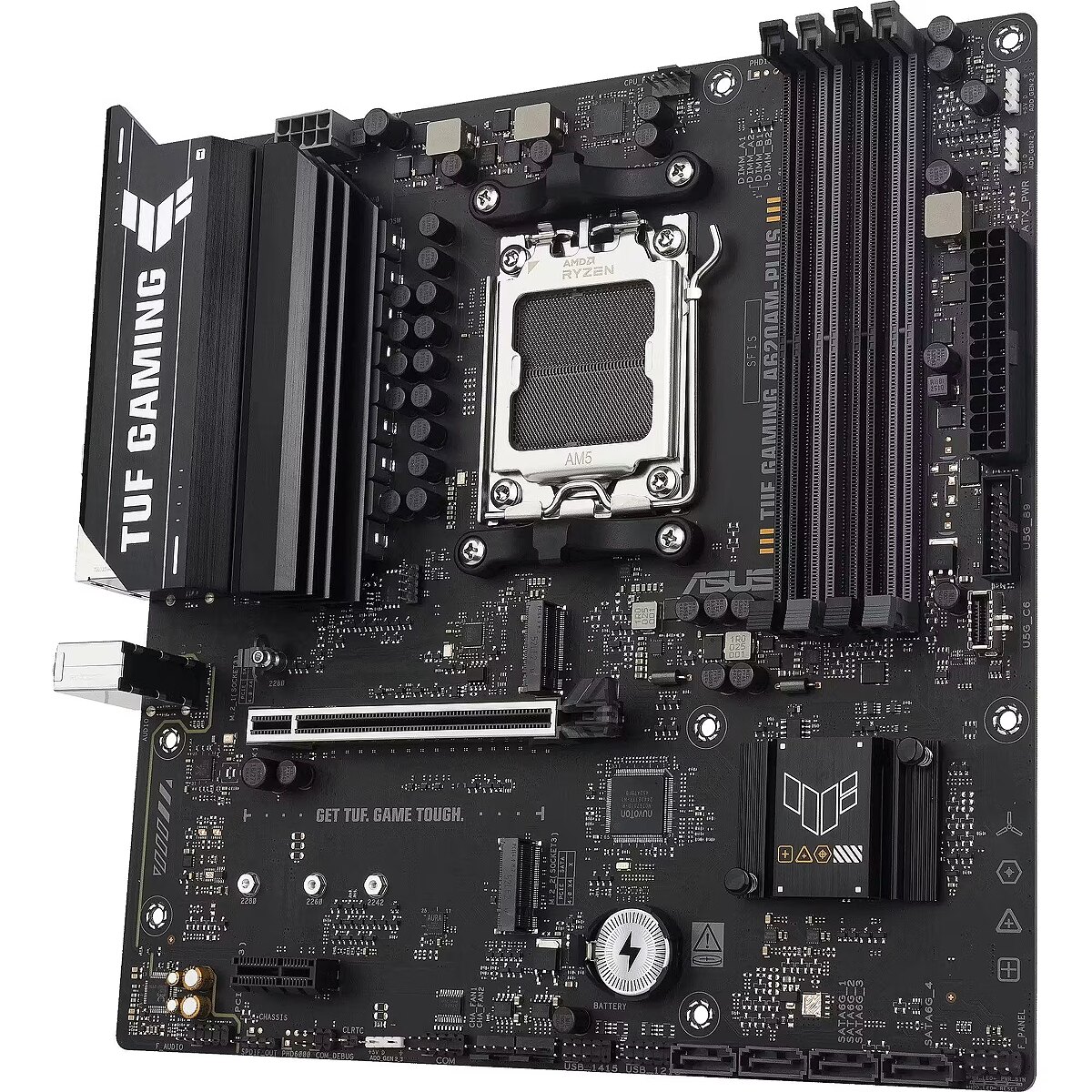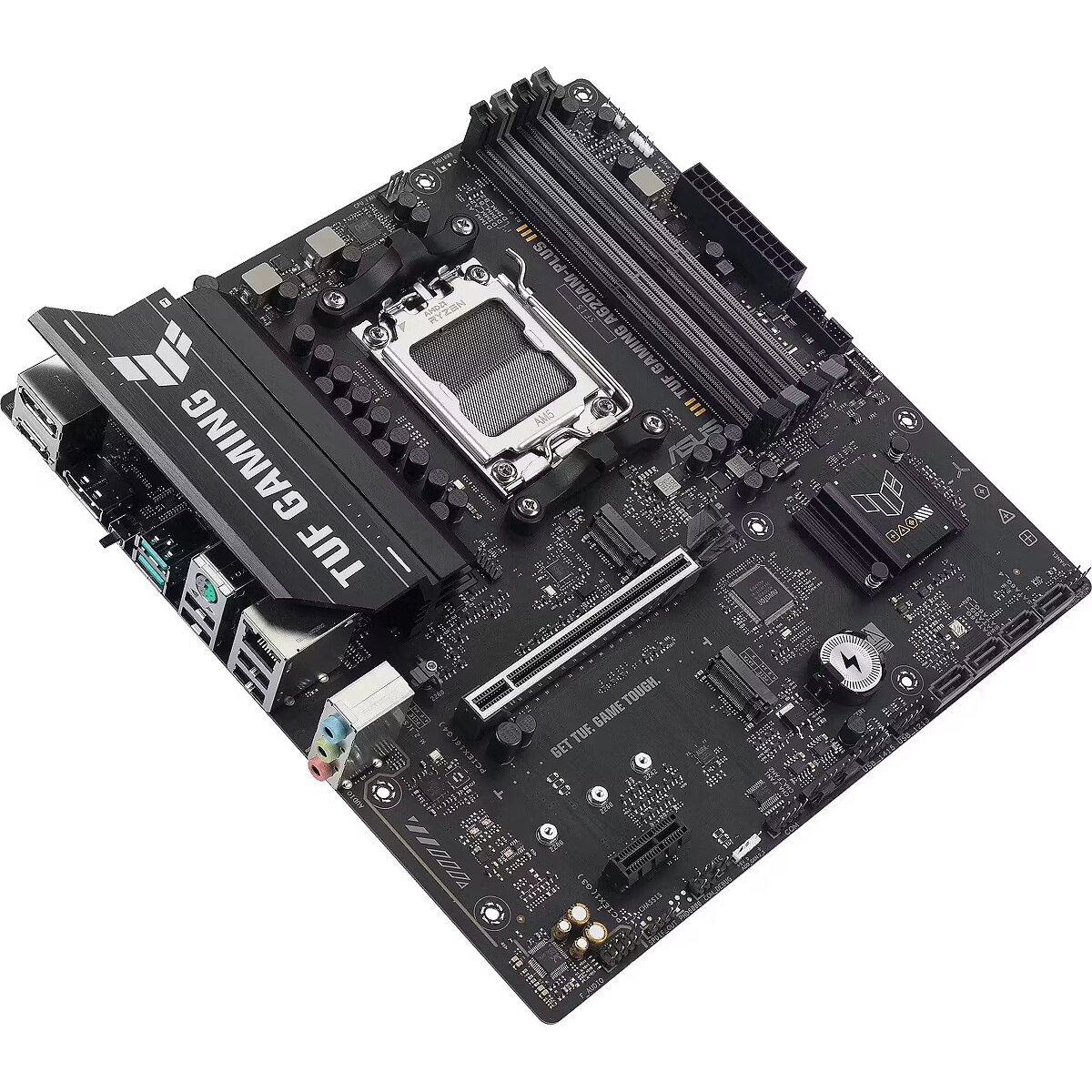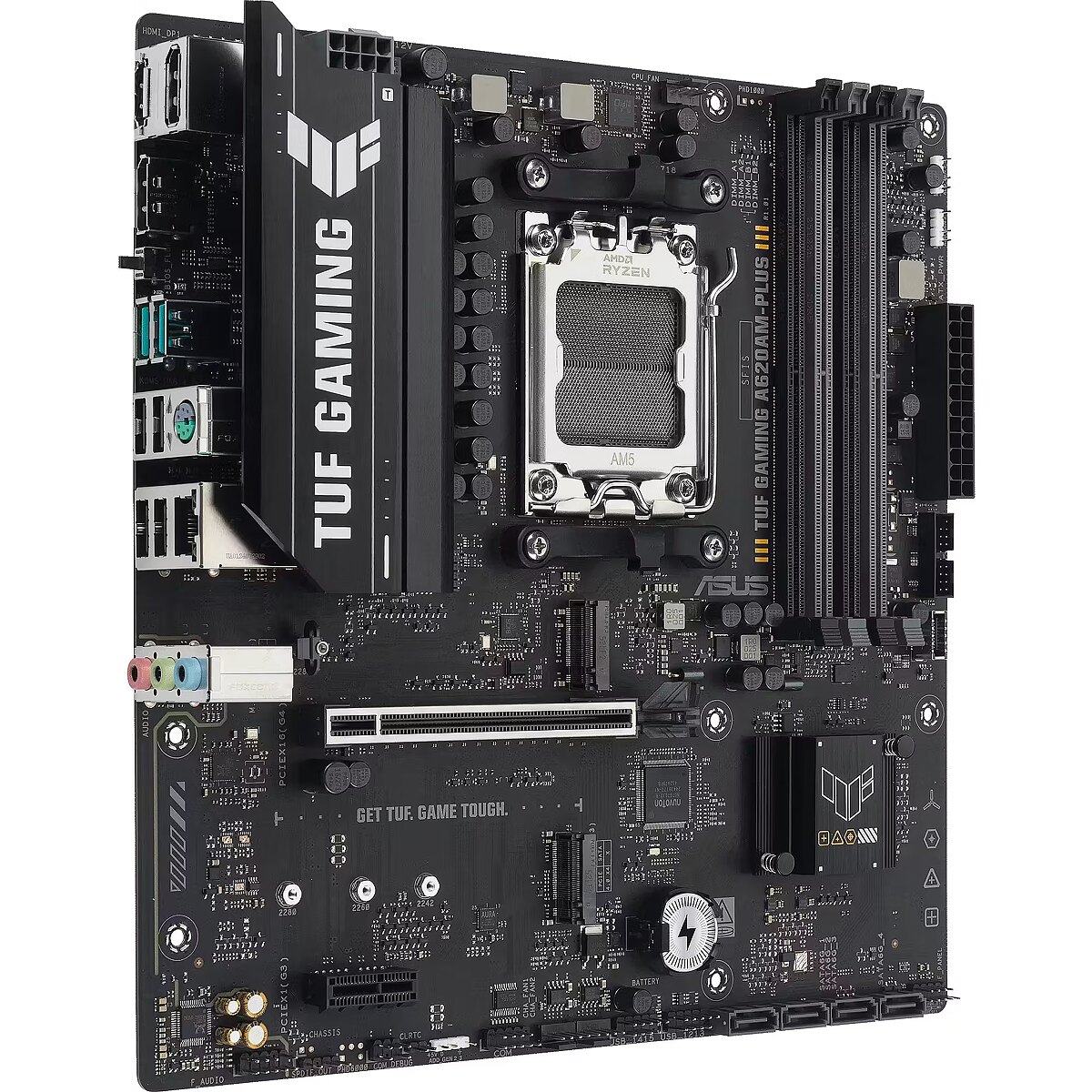 LongDesc - TUF GAMING A620AM-PLUSASUS TUF GAMING A620AM-PLUS takes all the essential elements of the latest AMD Ryzen™ processors and combines them with game-ready features and proven durability. Engineered with military-grade components, an upgraded power solution and a comprehensive cooling system, this motherboard goes beyond expectations with rock-solid and stable performance for marathon gaming. TUF GAMING motherboards also undergo rigorous endurance testing to ensure that they can handle conditions where others may fail. This platform delivers the power and connectivity that advanced AI PC applications demand.