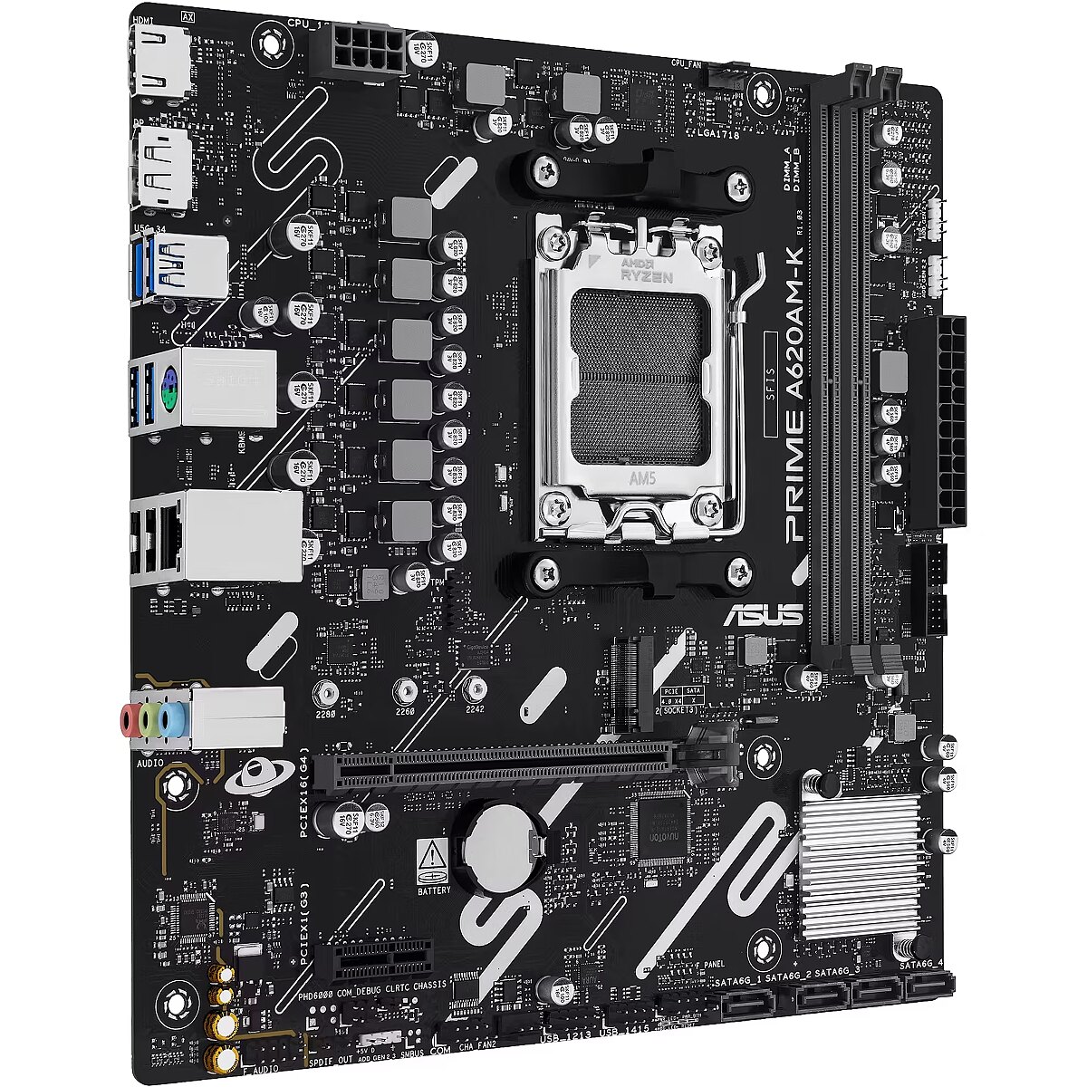 ShortSummaryDescription - ASUS PRIME A620AM-K, AMD, Socket AM5, AMD Ryzen 7000 Series, AMD Ryzen 8000 Series, AMD Ryzen 9000 Series, Socket AM5, DDR5-SDRAM, 128 GB