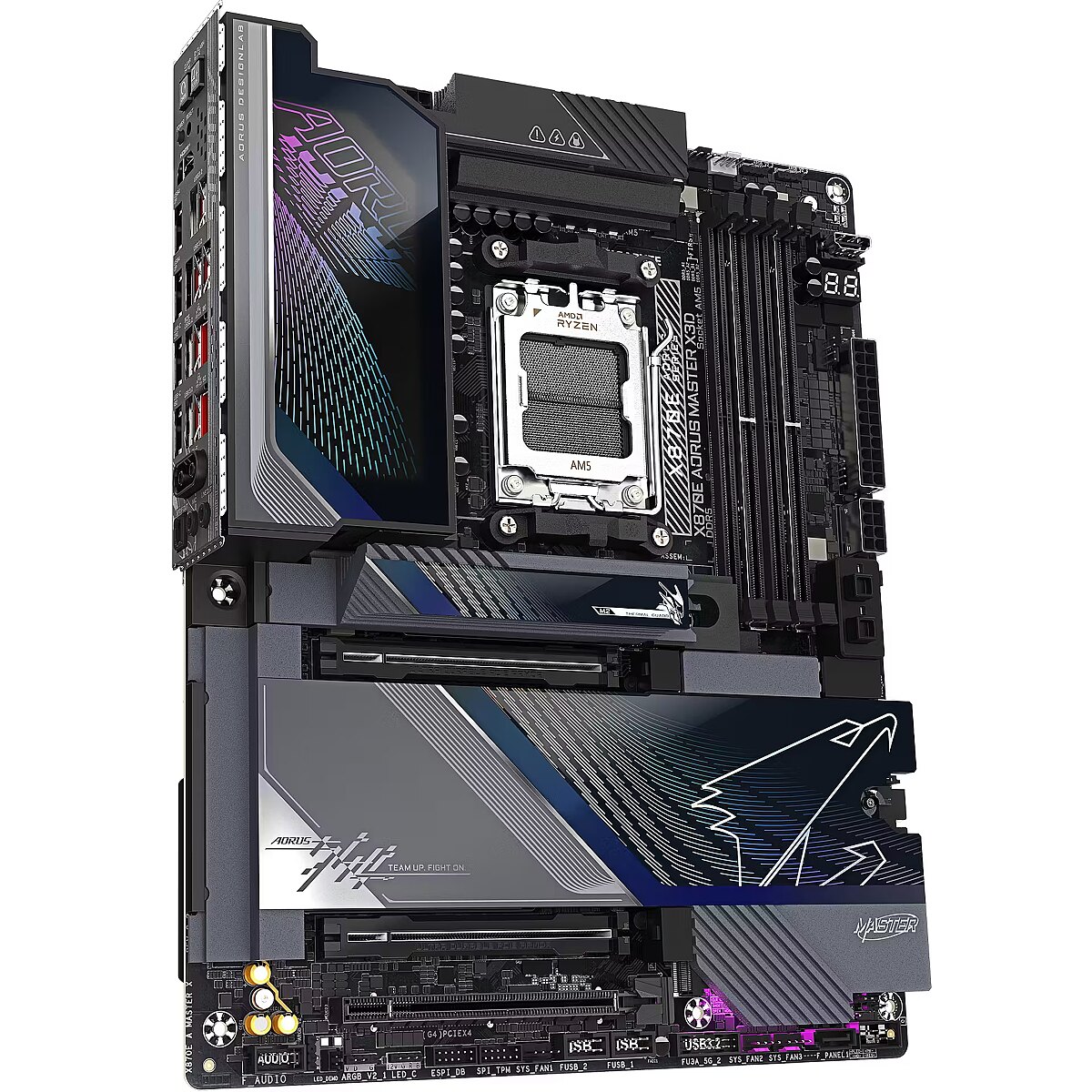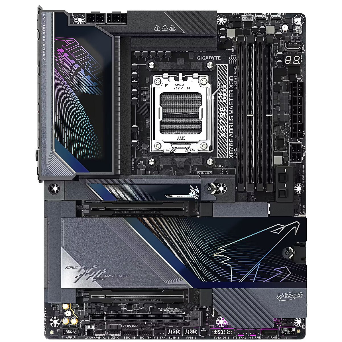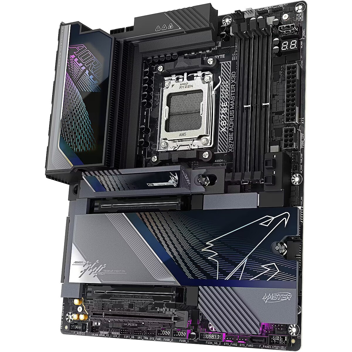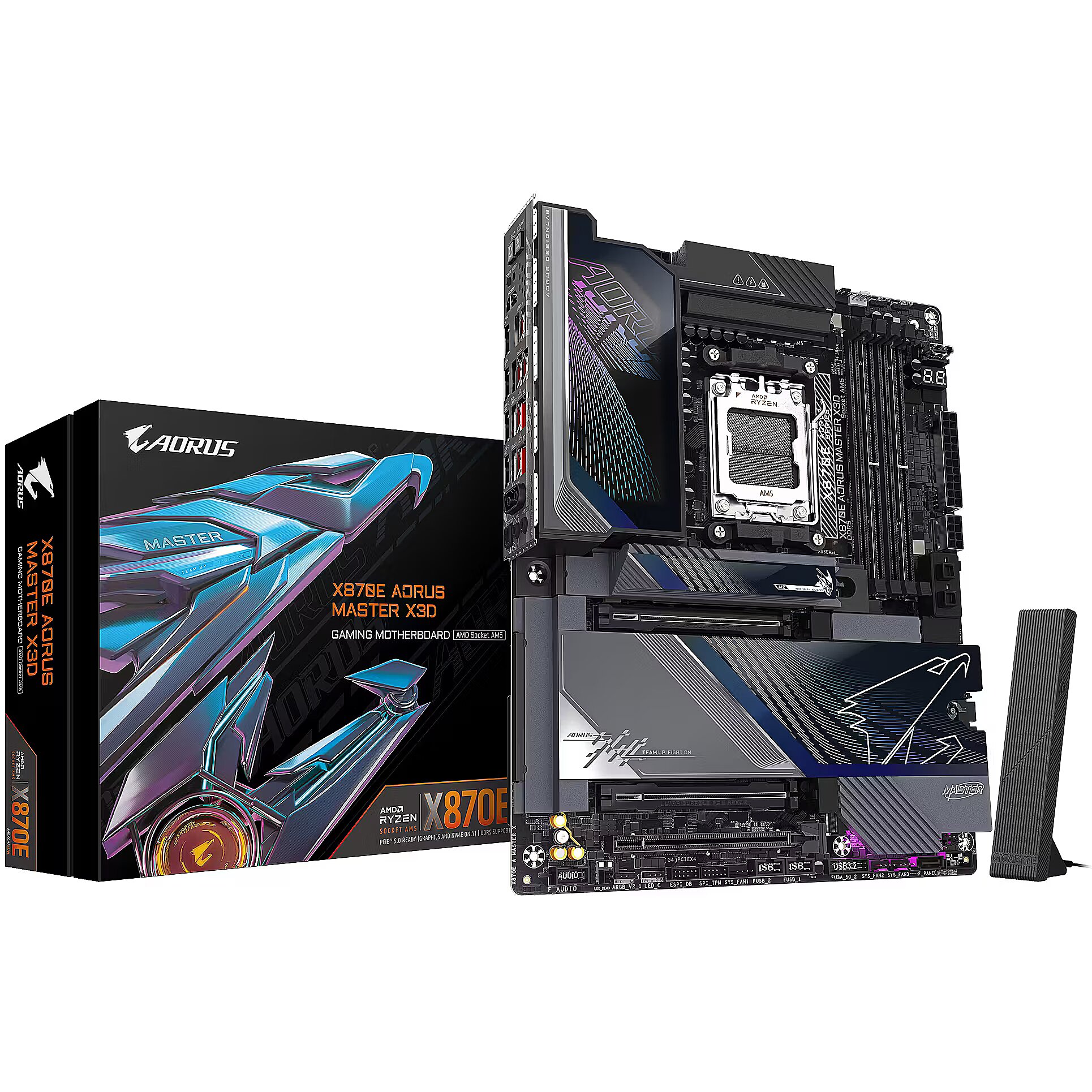 ShortSummaryDescription - GIGABYTE X870E AORUS MASTER X3D Motherboard - Supports AMD Ryzen 9000 CPUs, 18+2+2 Phases Digital VRM, up to 9000Hz DDR5 (OC), 2xPCIe 5.0 + 3xPCIe 4.0, Wi-Fi 7, 10GbE LAN, USB 4, AMD, Socket AM5, AMD Ryzen 7000 Series, AMD Ryzen 8000 Series, AMD Ryzen 9000 Series, Socket AM5, DDR5-SDRAM, 256 GB