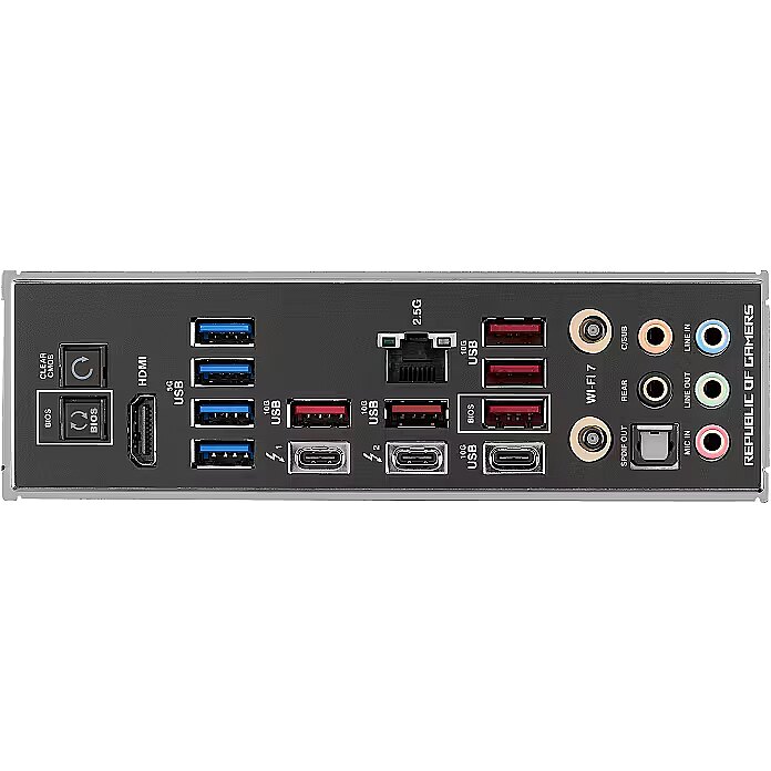 Sound card - ROG SupremeFX 7.1 Surround Sound High Resolution Audio CODEC ALC4082* Impedance detection for front and rear headphone outputs Supports: jack detection, multi-streaming, front panel jack reassignment High-quality 120 dB SNR stereo output and 110 dB SNR recording input Supports playback up to 32-bit/384 kHz Audio features SupremeFX shielding technology ESS ES9218 QUAD DAC Gold-plated audio sockets Rear optical S/PDIF output port High-quality audio capacitors *The LINE OUT port on the rear panel does not support surround sound. If you want to use surround sound, be sure to connect your audio output device to the audio jack on the front panel of the case, or use an audio device with a US interface