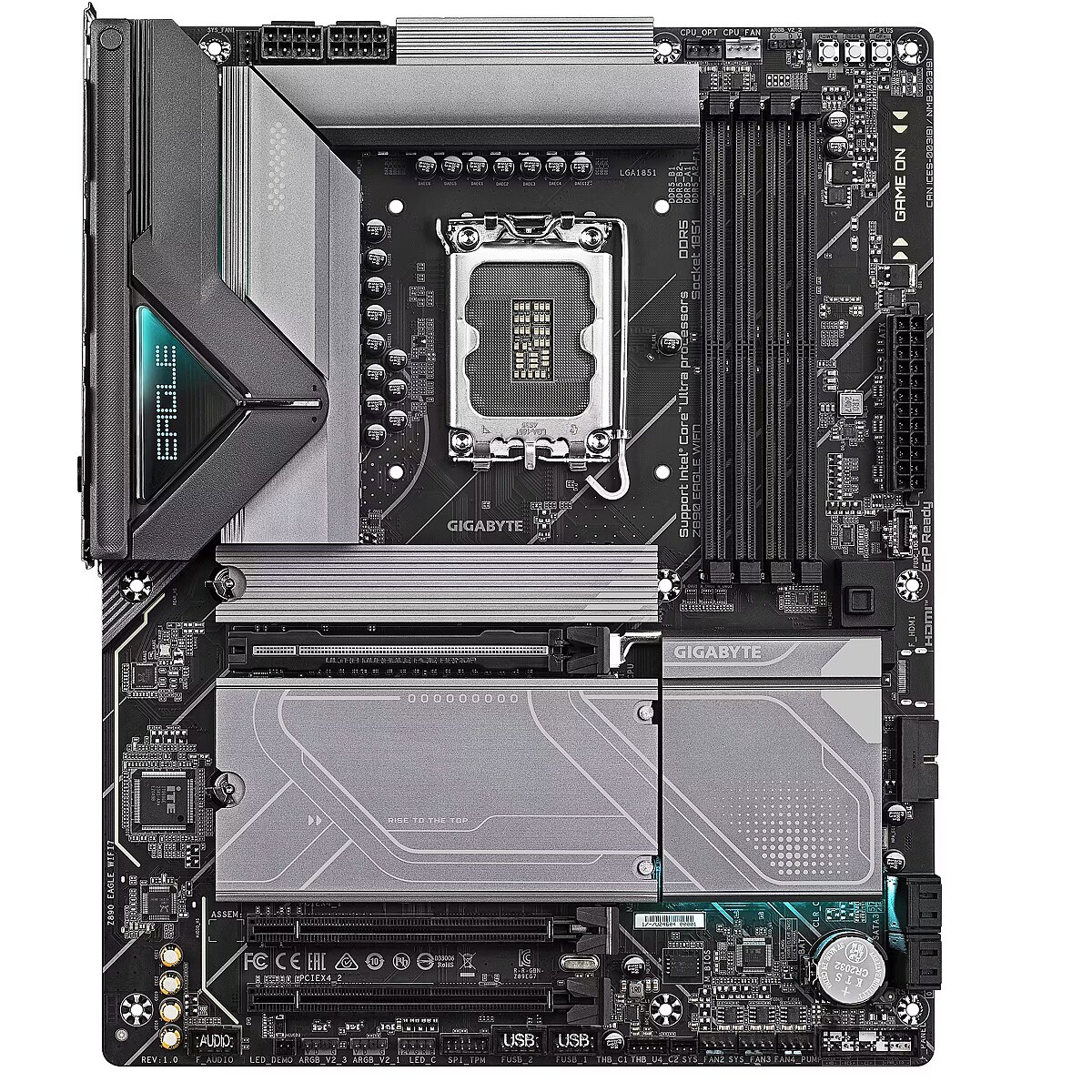 ShortSummaryDescription - GIGABYTE Z890 EAGLE WIFI7 Motherboard - Supports Intel Core Ultra (Series 2) CPUs, 14+1+2 phases VRM, up to 8800MHz DDR5 (OC), 1xPCIe 5.0 + 3xPCIe 4.0, Wi-Fi 7, 2.5GbE LAN, USB 4, Intel, LGA 1851 (Socket V1), Intel Core Ultra (Series 2), LGA 1851, 256 GB, DDR5-SDRAM