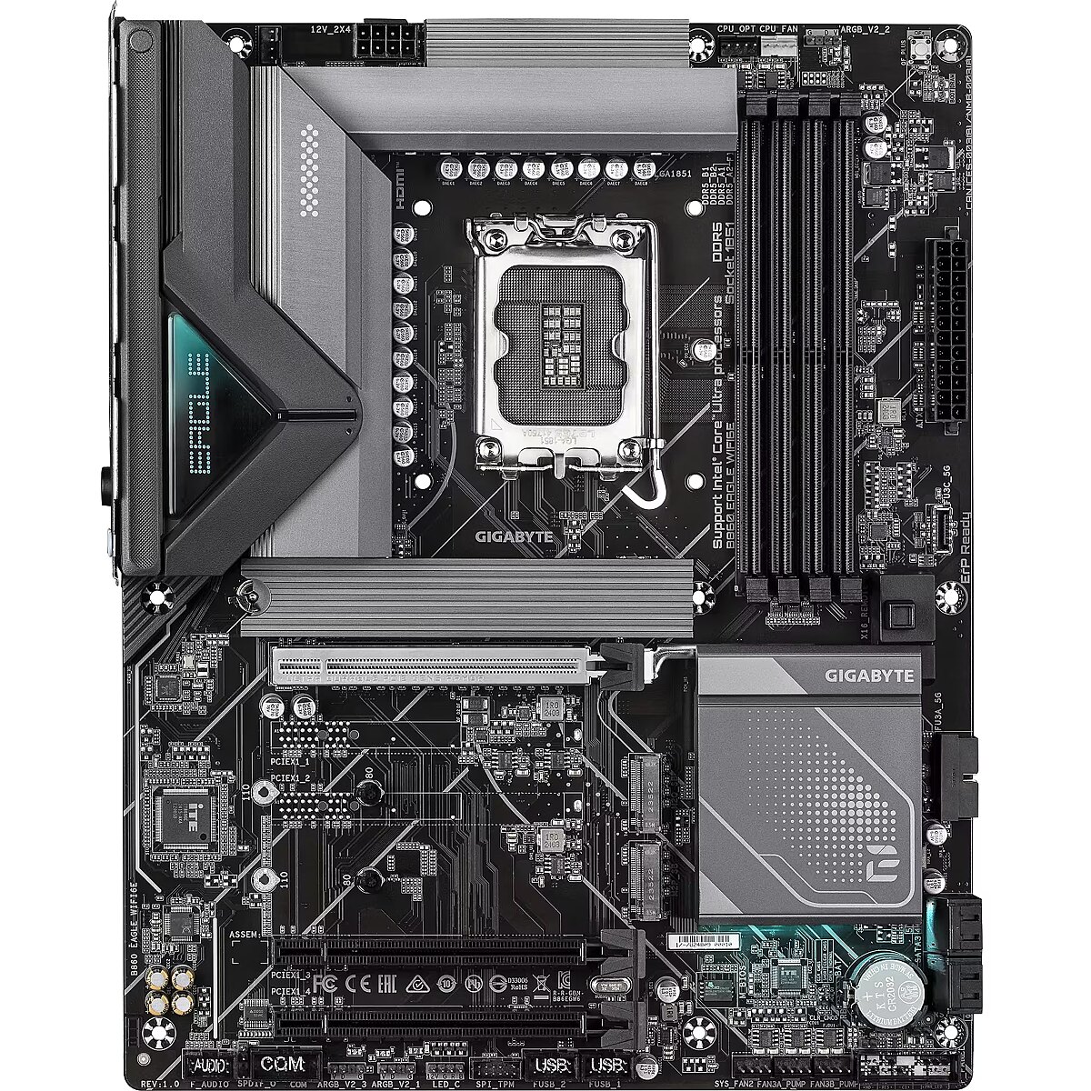 ShortSummaryDescription - GIGABYTE B860 EAGLE WIFI6E Motherboard - Intel Core Ultra Series CPUs, 12+1+2+1 Phases VRM, up to 9066MHz DDR5, 1xPCIe 5.0 + 2xPCIe 4.0 M.2, 2.5GbE LAN, WIFI 6E, USB 3.2 Gen 2x2, Intel, LGA 1851 (Socket V1), Intel® Core™ Ultra (Series 1), Intel Core Ultra (Series 2), LGA 1851, DDR5-SDRAM, 256 GB