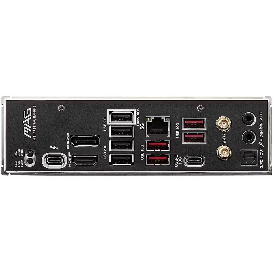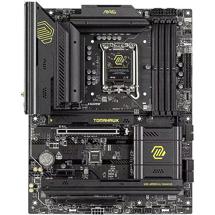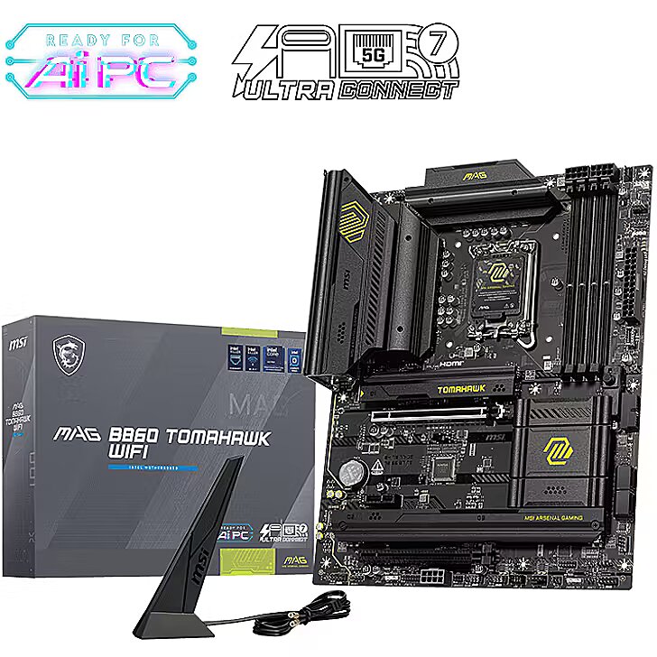 Description - MAG B860 TOMAHAWK WIFI MAG B860 TOMAHAWK WIFI is designed for gamers with a stable, durable and DIY friendly foundation for their PC builds. Coming up with Killer Wi-Fi 7 solution and 5G LAN, Thunderbolt 4, PCIe 5.0 solutions, Supplemental PCIe Power and exclusive EZ DIY features, it's ready for the battlefied of Intel Core Ultra processors. Support Intel® Core™ Ultra Processors (Series 2) for LGA 1851 socket Supports DDR5 Memory, Dual Channel DDR5 9200+ MT/s (OC) Ultra Performance: 12+1+1+1 Duet Rail Power System 60A SPS, dual 8-pin CPU power connectors, Core Boost, Memory Boost, 6-layer PCB made by 2oz thickened copper and server-grade level material Frozr Guard: Extended Heatsink, MOSFET thermal pads rated for 7W/mK, additional choke thermal pads and EZ M.2 Shield Frozr II are built for high performance system and non-stop experience EZ DIY: EZ PCIe Release, EZ M.2 Shield Frozr II, EZ M.2 Clip II and EZ Antenna Lightning Fast Game experience: PCIe 5.0 slot, Lightning Gen 5 x4 M.2 Ultra Connect: Thunderbolt™ 4 port, Intel® Killer™ 5G LAN & Intel® Killer™ Wi-Fi 7 Solution - the latest solution for professional and multimedia use, delivering secure, stable, and high-speed networking and data transmission Audio Boost : Reward your ears with studio grade sound quality for the most immersive gaming experience