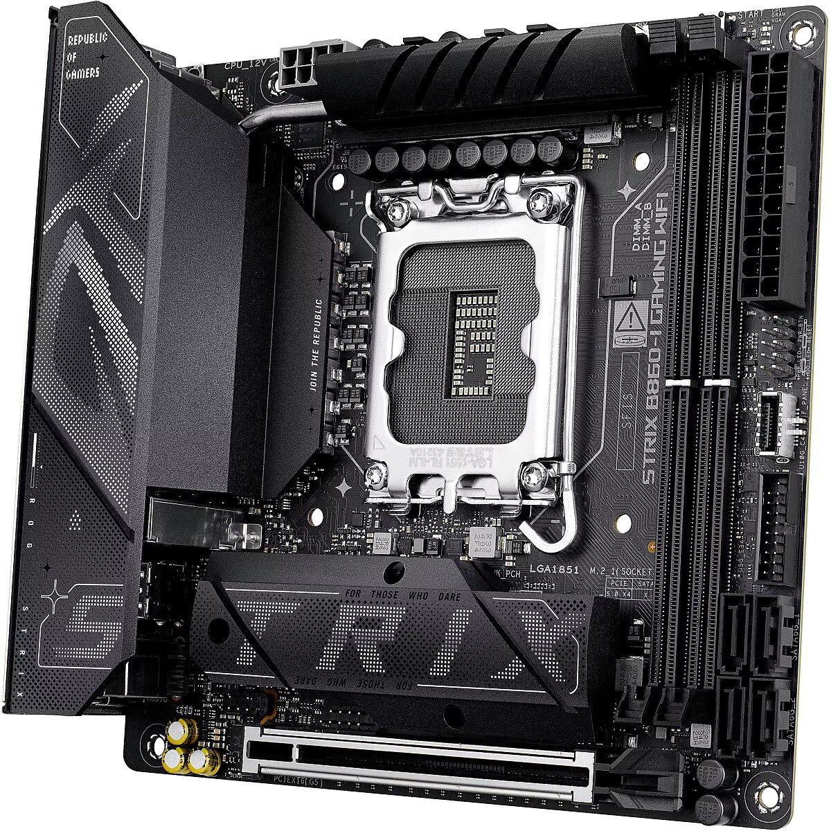 ShortSummaryDescription - ASUS ROG STRIX B860-I GAMING WIFI, Intel, LGA 1851 (Socket V1), Intel Core Ultra (Series 2), DDR5-SDRAM, 128 GB, DIMM