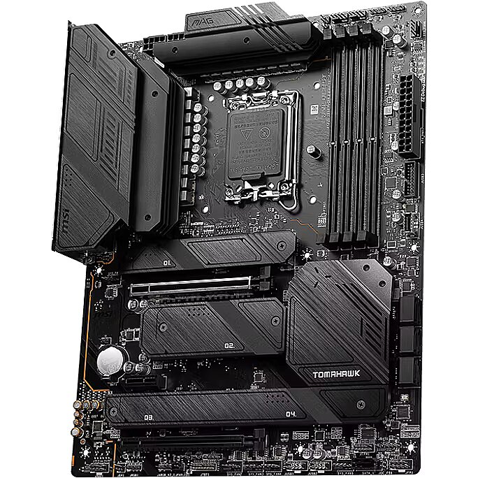Cooling: Extended Heatsink - The Extended Heatsink features a larger heat dissipation area, allowing even high-end CPUs to run at full speed on the board. M.2 Shield Frozr System - The M.2 drive cooling system prevents the appearance of thermal throttling effects on data transmission, allowing drives to run much faster. Solid metal heatsink that cools the VRM voltage regulator moduleThe heatsink located on the VRM voltage regulator module also cools the MOS transistors and helps dissipate heat. Heat sink with 7W/mK thermal pads and additional thermal pads on the chokes. High-quality 7W/mK thermal pads located on the MOSFET power transistors and additional thermal pads located on the chokes ensure stable operation of all CPU cores and allow them to run at high speeds on the board. Optimised for water cooling The motherboard is designed to work with the most popular all-in-one water cooling systems and custom liquid cooling systems on the market. Dedicated for water pump interoperability, the PIN connector supports devices that draw up to 3 amps, giving you full control over the speed of the water pump. A clearly marked keep-out-zone allows for easy and safe cooling installation and perfect matching of equipment. System for assemblers 2.0 - integration into the system environment Connect and position the components of the MSI cooling system in the computer case in an optimal way. You can do this thanks to strategically placed slots, including a connector that is dedicated to the pump fan of the liquid cooling system. Power supply 16+1+1-phase power system compliant with Mirrored Power Arrangement Unleash power and enjoy maximum performance with the premium VRM voltage regulator module design, using a total of 16+1+1 power phases compliant with the Duet Rail Power System (DRPS). The combination of dual connectors and power stage design makes MAG Z790 TOMAHAWK WIFI DDR4 series motherboards ready to meet the challenges of running the highest-end CPUs. Optimised PCB design The PCB design has been optimised for higher bandwidth and transfer speeds, which also benefits reliable transmission in the circuitry. EZ M.2 Clip Having trouble unscrewing and twisting screws? MSI's innovative EZ M.2 clip will help you install your M.2 SSD quickly and with minimal effort. Driver tool installer Once connected to the internet, the MSI Driver Utility Installer app will automatically detect and display on-screen a list of drivers and utilities that you can download and install in just a few clicks. Find out more *Please make sure your computer is connected to the Internet, otherwise the Driver Utility Installer will not start automatically. *MSI Driver Utility Installer is also prepared to work with Windows 11 build 22H2. Flash BIOS Button Have you encountered problems while updating the BIOS or somehow corrupted it? Don't worry, MSI motherboards offer plenty of options to help you reboot your system successfully. Lightning Gen 5 PCI-E and Steel Armor compatible connectors LIGHTNING GEN 5 PCI-E Double the previous generation's x16 interface bandwidth to achieve 128GB/s data transfer rates SMT-MOUNTED PCIE 5.0 SLOT Advanced SMT (Surface Mount Technology) for PCIE slot mounting reduces interference and electrical noise, allowing full PCI-E 5.0 signal support. REINFORCED, ROBUST SOLDER JOINTS The motherboard has been secured with additional solder points. Now, heavy and large graphics cards can be placed in its PCIE slots without problems. Fast and future-ready storage MSI MPG series motherboards support all the latest storage standards, allowing users to plug in any ultra-fast storage device. Launch games faster, load levels faster and gain a real advantage over your enemies. Latest DDR5 memory installed in SMT-mounted connectors AOgreat step forward in DDR memory performance has been taken with the latest DDR5 memory. Combined with a dedicated SMT surface mount process and MSI Memory Boost technology, MA Z790 TOMAHAWK WiFi series motherboards are poised to offer users remarkable memory performance. The advanced SMT (Surface Mount Technology) surface mount process reduces slot soldering errors, electromagnetic interference and interference, allowing for the delivery of an undistorted, clean signal. This mounting, combined with MSI's exclusive Memory Boost technology, allows MSI motherboards to deliver a clean, high-frequency DDR5 signal. Easy overclocking with XMP profiles XMP (Extreme Memory Profiles) profiles, which are available in the BIOS of MSI motherboards, are tested and certified by MSI's overclocking lab. With automatic performance-enhancing settings, it's easy to enable them and thus achieve the highest speed and stability for your memory system. MSI Center Offered under the name MSI Center, MSI's new software combines MSI's existing suite of diverse utilities into one centralised application. Take control of advanced motherboard functions and unleash their limitless possibilities. Clikck BIOS 5 Enjoy a BIOS full of diverse features designed for ease of use. Tune your motherboard for gaming performance, efficiency or overclocking and break world records! XMP Use predefined XMP profiles and automatically overclock compatible DDR memory. VMD (Volume Management Device) Allows direct control and management of NVMe SSDs over the PCIe bus without the need for additional hardware adapters./li> M-FLASH A feature that allows for a convenient, in an instant, traditional BIOS flash or update from the CMOS Setup Utility menu. HARDWARE MONITOR Get instant access to critical real-time hardware information such as temperature, memory capacity, clock speed and voltage. MEMORY TRY IT FUNCTION Extract extreme speed from RAM modules and get better system performance. SEARCH and FAVORITES FUNCTIONS The search function and favourite options located in the top right corner of the BIOS menu will quickly take you to the tab you need at the moment. Exclusive add-on application AIDA64 Extreme When you buy an MSI motherboard, y