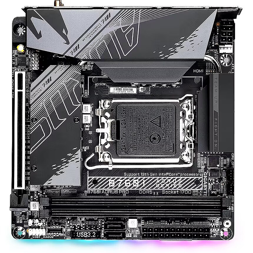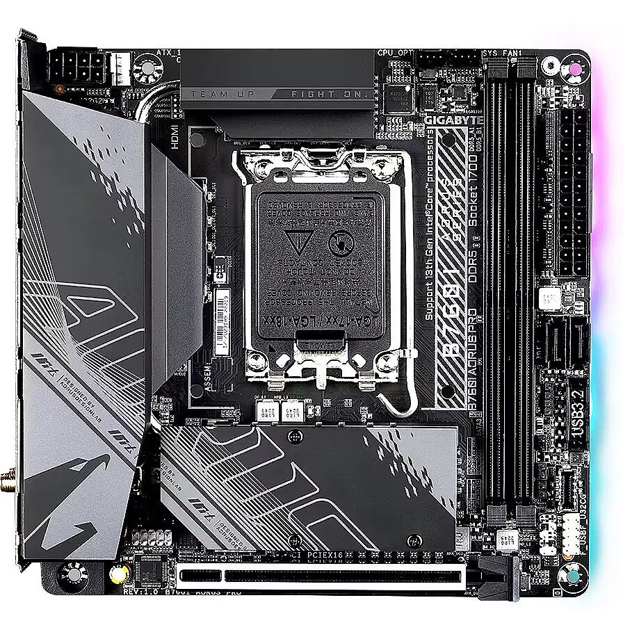 ProductName - B760I AORUS PRO Motherboard - Supports Intel Core 14th Gen CPUs, 8+1+1 Phases Digital VRM, up to 8000MHz DDR5 (OC), 2xPCIe 4.0 M.2, Wi-Fi 6E, 2.5GbE LAN, USB 3.2 Gen 2