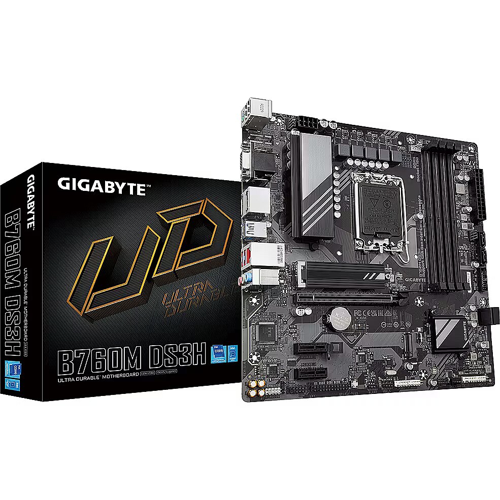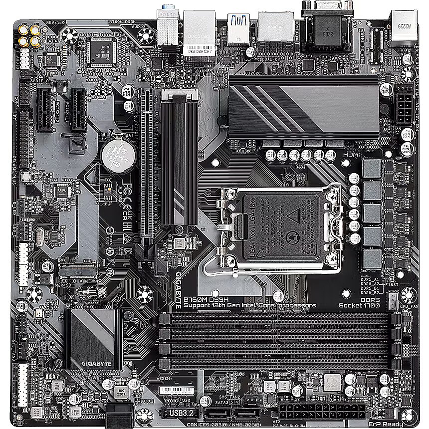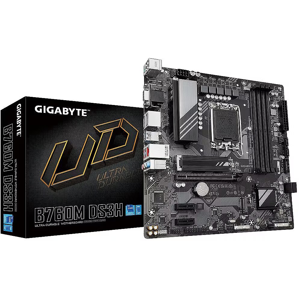 Description - GIGABYTE B760M DS3H Intel Socket LGA 1700 Support 13th and 12th Gen Series Processors Unparalleled Performance Hybrid 6+2+1 Phases Digital VRM Solution Dual Channel DDR5 4*DIMMs XMP Memory Module Support Next Generation Storage 2*PCIe 4.0 x4 M.2 Connectors M.2 Thermal Guard To Ensure M.2 SSD Performance EZ-Latch PCIe 4.0x16 Slot with Quick Release Design Fast Networks 2.5GbE LAN Extended Connectivity Rear USB-C 10Gb/s, DP, HDMI Smart Fan 6 Features Multiple Temperature Sensors, Hybrid Fan Headers with FAN STOP Q-Flash Plus Update BIOS Without Installing the CPU, Memory and Graphics Card