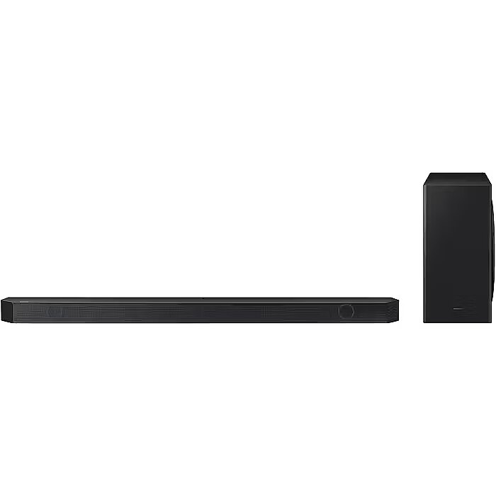 LongDesc - Wireless Dolby AtmosWireless Dolby Atmos with Samsung TVsExperience the ultimate 3D sound from Dolby Atmos using its object based audio formats for all sorts of content including movie and music, without HDMI cables.True 5.1.2ch SoundNext-level sound pouring from all aroundExperience immersive sound incorporated with new physical side and top speakers. 5.1.2ch delivers a direct overhead sound for a powerful audio experience.Q-SymphonyTV and Soundbar orchestrated in harmonyQ Symphony is one of the Samsung exclusive technologies. It enables both TV speakers and Soundbar to work simultaneously, creating the ultimate sound synergy.Now compatible with more Samsung TV models.SpaceFit Sound ProSound calibrated for your space to perfectionEnjoy stunning sound that’s tuned into your interior environment. SpaceFit Sound Pro fuses the heightened clarity and immersive audio of SpaceFit Sound with optimized bass. Now, you can enjoy an incredible audio experience.Adaptive SoundSound optimized for each sceneAdaptive Sound automatically optimizes the sound for specific audio content, delivering clear voices and detailed sounds according to the content and volume.Active Voice Amplifier (AVA)Catch every word without distractionsHear dialogue clearly, even in distracting environments. Active Voice Amplifier plays up voices and adapts them to changing noise levels, so you don't miss a word.Samsung Audio LabEngineered by sound innovation expertsTested and tuned at our California Audio Lab, world-class audio engineers apply advanced acoustic technologies for balanced, room-filling sound.HDMI eARCSound quality delivered seamlesslyConnect various devices like game console or TV to the Soundbar. HDMI eARC technology delivers optimal sound without any deterioration.Works with GoogleWorks with your voice assistantSimply ask Google to play somethingBuilt-in Voice AssistantStream the music you loveAsk Alexa to play something by simply saying the title or a few lines of the song's lyrics.Tap SoundJust tap to connectMirror your mobile audio to your Soundbar. With a simple tap, your music switches seamlessly to play in incredible soundbar quality.Game Mode ProBe a part of the game with dynamic soundPowerful Up firing speakers, acoustic beam and strong woofers of Soundbar provide 3D sound that's optimized for gaming. Soundbar automatically activates the Game Mode in sync with TV.One Remote ControlOne remote for total controlControl key Soundbar functions like power, volume, and even sound effects with the Samsung TV remote.Wireless TV ConnectionConnect your Soundbar to TV wirelesslyConnect your Soundbar to your Samsung TV with Wi-Fi or Bluetooth in just a few steps. Audio and video sync perfectly for an immersive viewing experience .Wireless Surround Sound CompatibleExpand your surround sound, wirelesslyWirelessly connect to rear speakers for an enhanced near-cinematic experience.