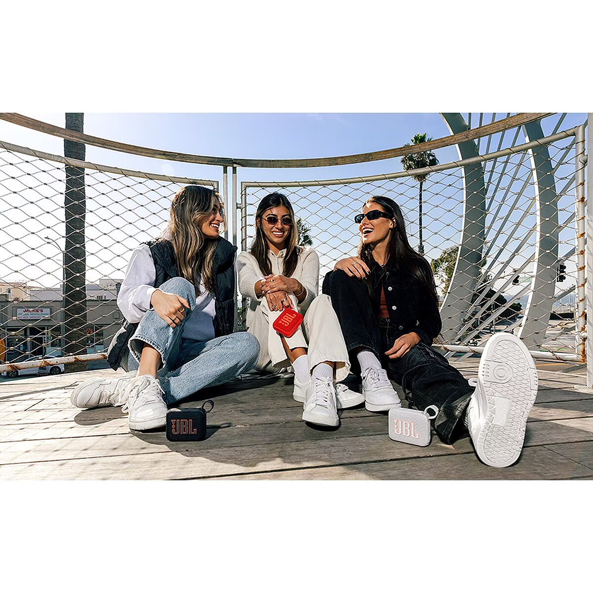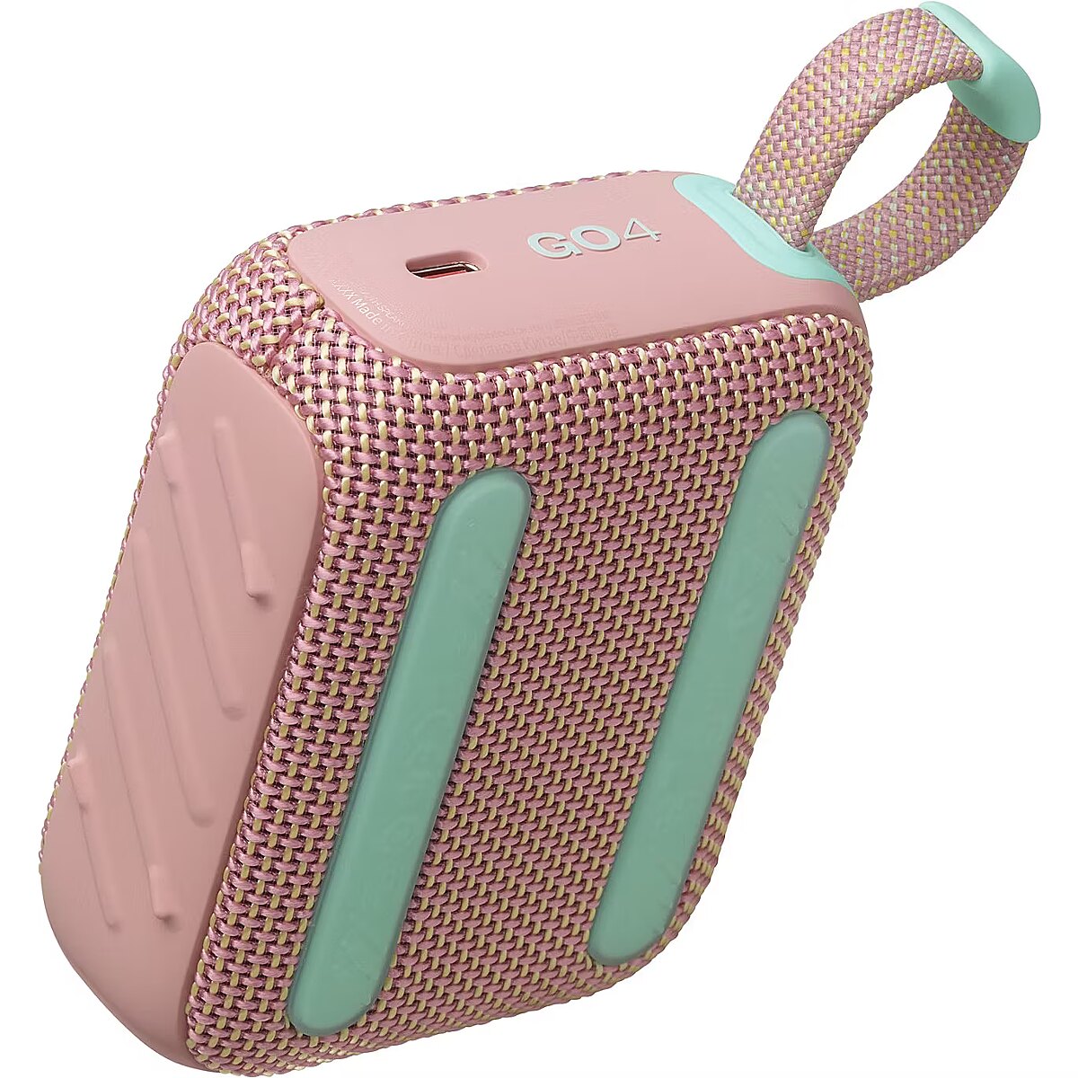 Take big JBL Pro sound wherever you go. The bold, colorful JBL Go 4 ultra-portable Bluetooth speaker fits in the palm of your hand, delivering clear, loud JBL Pro Sound with rich, punchy bass. Its newly redesigned integrated loop makes it easy to bring anywhere, and the variety of colorways means you can choose one that fits your vibe. Plus it's waterproof and dustproof, so it loves to go outside. And up to 7 hours of playtime means it will keep the good times rolling throughout a fun day trip or an evening chilling under the stars. Pair two Go 4's for stereo sound, or wirelessly connect multiple JBL Auracast-enabled speakers for even bigger sound. Crank it up and let your music take you anywhere. Ultra-portable JBL Pro Sound with punchier bass Up to 7 hours of playtime plus 2 hours with Playtime Boost Waterproof and dustproof Multi-speaker connection by Auracast Made in part with recycled materials JBL Portable app