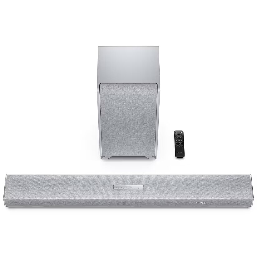 LongDesc - Stylish, powerful Soundbar with up-firing speakers and a wireless subwoofer. Experience Dolby Atmos and DTS:X cinema-style 3D surround sound in the comfort of your homeRear Speaker ReadyExpand your system with the optional HT-SPR52021(SL) rear speakers.Adds 2.0.2 channels: Upgrade to a 5.1.4 system with rear surround and additional height channels.Deeper immersion: Rear-firing audio brings increased surround coverage, adding richness and realism to every scene.Enhanced overhead sound: Up-firing drivers elevate the experience, delivering expansive and lifelike audio. Enhance your cinematic experience with effortless wireless connectivity.Multiple placement optionsSharp “Q” soundbars have multiple placement options. Use either low or riser feet options, or wall mount under your wall mounted TV.3.1.2 Surround SoundTransform your home audio with this 3.1.2 soundbar.Three front channels: Left, right, and centre deliver crystal-clear dialogue and dynamic sound.Dedicated subwoofer: Feel deep, powerful bass that brings movies, shows, and games to life.Two height channels: Overhead sound adds a new level of immersion for a cinematic experience.A rich surround sound experience in an easy-to-set-up system.Wireless connectionThe wireless subwoofer delivers a cinema-style experience, without the hassle of wires.Bluetooth 5.3Simple, fast and flexible: use Bluetooth to wirelessly stream audio from other devices such as your smartphone or tablet.DTS Virtual:XDTS Virtual:X® technology brings immersive audio to life, enhancing today’s dynamic home entertainment experiences.Tuned by DevialetExperience exceptional audio performance fine-tuned by Devialet, the French expert renowned for acoustic innovation.4K pass-throughThe HDMI inputs allow 4K signals from devices like 4K Blu-ray disc players to send their full visual clarity and depth.EQ presetsEqualiser presets adjust the sound profile to better suit the genre of content you are viewing. Choose from: Movie, Music, Voice, Sport, Game, Night, Custom and Off. Adjusting the bass and treble allows you to create your own customised EQ preset.Connections1x eARC, 2x HDMI inputs with 4K pass-through, Bluetooth 5.3, Digital Optical In, USB media and 3.5mm AuxSuitable for TVs 40″ and above.For an audio experience that complements your viewing, choose a soundbar sized to fit your TV and space—offering a balanced design that integrates seamlessly into your setup while delivering impressive performanceUSB PlaybackSharp “Q” soundbars play the following formats: MP3/OGG/WAV/FLAC/AAC/M4A. Drives up to 64GB are supported.HDMI eARCThe “e” in eARC stands for “enhanced.” eARC HDMI sockets offer greater bandwidth and speed than standard ARC, enabling audio formats like Dolby Atmos to be delivered at their full quality when paired with compatible cables.
