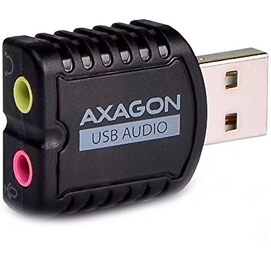 LongDesc - AXAGON ADA-10 SB audio MINI adapter easily and quickly adds an external USB sound card to your computer.The installation can be handled even by a layman - only plug the adapter into the USB port of the computer and the rest is done automatically.The miniature sound card is suitable for both desktop and laptop computers and allows headphones, microphones or headsets to be connected for Skype service, for example. It also serves well as a replacement for the broken original sound card in your laptop.Outputs:• 2-channel analog 16-bit output (3.5 mm stereo jack):• stereo output for headphones or active speakers.Inputs:• 1-channel analog 16-bit input (3.5 mm stereo jack):• mono microphone input.Sampling rate, resolution and output converter (DAC) noise:• Analog - 44.1 / 48 kHz @ 16 bit for playback.• Signal-to-Noise ratio (Output SNR) ≥ 93dB.• Harmonic distortion (Output THD + N) ≤ -70dB.Sampling rate, resolution and input converter (ADC) noise:• Analog - 44.1 / 48 kHz @ 16 bit for recording.• Signal-to-Noise ratio (input SNR) ≥ 83dB.• Harmonic distortion (input THD + N) ≤ -76dB.Indicators:• A green LED indicating the connection to the computer's USB port (permanent light) and data transmission (blinking).Other features:• USB 2.0 full speed 12 Mbit/s and USB 1.1 compatible interface.• Built-in direct USB Type A male connector.• Easy to install thanks to full Plug and Play support.• Possibility to connect your device while running thanks to the Hot Plug support.• Compliant with the USB Audio Device Class specification v1.0.• Compliant with the USB HID Class specification v1.1.• Adapter power supply via USB (bus power) - no auxiliary power supply required.• Miniature dimensions of 39 x 24 x 12 mm, when inserted into the USB port, the adapter protrudes only 27 mm.• Weight only 8 g.• The CMedia HS-100 chipset was used.Setting up a sound card in Windows allows: • Adjusting volume and balance of speakers.• Enhanced speaker features: Bass Boost, Virtual Surround Sound, Room Correction, Loudness Equalization.• Setting the sampling rate and bit depth for both reproduction and recording.• Setting the automatic level of gain for the microphone (Automatic Gain Control).• Setting the manual level of gain for the microphone.Supported OSs:• MS Windows XP / Vista / 7 / 8 / 8.1 / 10 and later, Windows Server 2003 / 2008 / 2012 / 2016 and later (supported are all 32- and 64-bit Windows OS versions), Mac OS X 10.4.x and higher, Linux with kernel 2.6.x and above.• Note: Drivers are included with supported operating systems and are installed completely automatically. No other drivers need to be installed and are not even available. Compatible with all Internet telephony programs using the sound card.Package contains: • audio adapter,• packed in a blister with a sealed-on back card with the installation procedure.