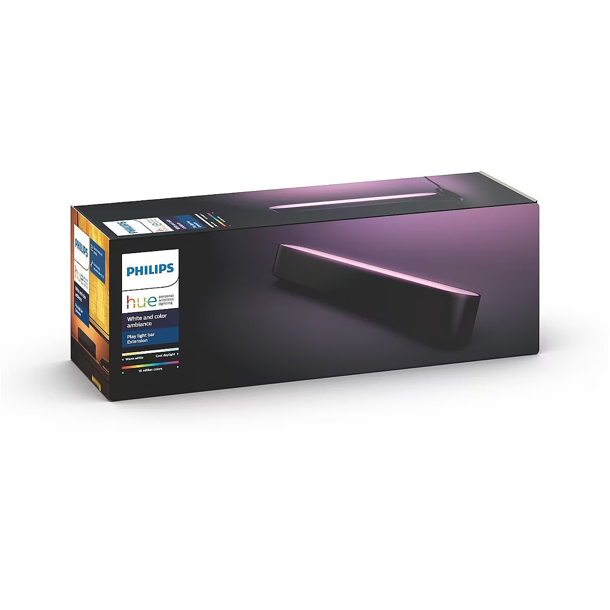Description - Hue White and color ambiance Play light bar extension pack. Upgrade your vibrant ambiance with the Hue Play light bar extension. Choose from 16 million colours and enjoy different scenes. Lay it on the floor, let it stand on a cabinet or mount it on the back of the TV and paint your wall with light. Extension pack 1 PC LED integrated Black Smart control with Hue bridge