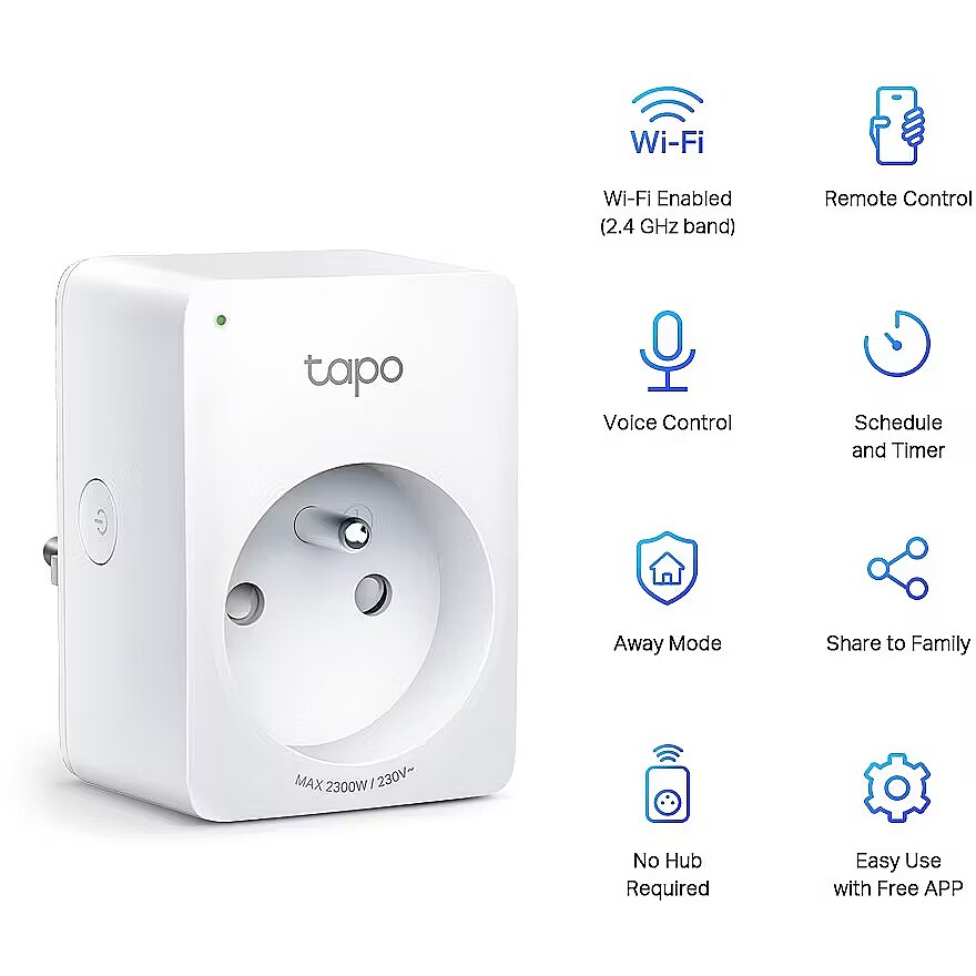 LongDesc - The Superior Smart Partner for Small AppliancesMini Smart Wi-Fi Socket P100Free Up Your Hands with Voice ControlMighty Features and Compact SizeTapo P100 is built small to leave adjacent sockets open, making it convenient for daily use.A Deterrent for Your HomeAway Mode, a feature that intelligently simulates someone being home by turning the plugged in device (like a lamp) on and off, makes it appear that someone is home when you’re on long trips to keep away people with ill intent.Share to FamiliesNot limited to single control, family members can directly share management permissions with each other, saving time and enhancing user-friendliness for the elderly.Multiple Safety Guarantees- Under strict quality inspection by TP-Link’s lab and certification by global authority.- UL94-V0 PC flame-retardant materials help minimize burning hazards.- Automatic storage after powered off or connection is lost.- Sliding safety cover prevents electric shock.