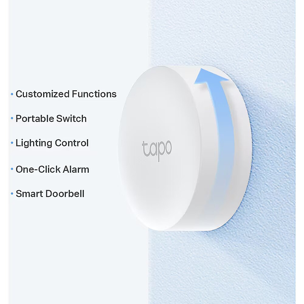 LongDesc - Smart Control at Your FingertipsSmart ButtonSmart Control with One ClickDon’t bother opening up an app or calling out to your voice assistant. Just click the button and enjoy a quicker and easier way to control your smart lights. Place two or more buttons in different locations, so your lighting control is always within reach.Control the Entire Home with One ButtonPair all your Tapo lights and devices with a single button for simple and handy control. When you’re on the go, activate Away Mode with one click to turn off all your connected devices.A Touch of SecurityEmergency help is just a click away. Install the Tapo Smart Button near a tub, toilet, or bedside for always within reach access.Your New Smart DoorbellBuild your smart doorbell system by installing the Tapo Smart Button on your door and pairing it with your Smart Hub. Mute and unmute notifications with a quick button press on the hub.Customizable FunctionsProgram your smart button to trigger up to 4 different actions with single tapping, double tapping, and rotating controls.Single TapTurn the light on/off Double TapChange the lighting effect RotateChange the brightness or light temperatureFlexible MountingInstall it anywhere in your home quick and easy. Place it on a table or bedside cabinet, mount it to the wall with the provided adhesives, or attach it to any magnetic surface.Long-Lasting PerformanceTapo Smart Button uses an ultra low-power power wireless protocol and a replaceable CR2032 coin cell battery to provide you years of smart control.All in One AppExperience your next-level smart home with the Tapo line all in a single app. Create a more secure, convenient, and comfortable living space for you and your loved ones.