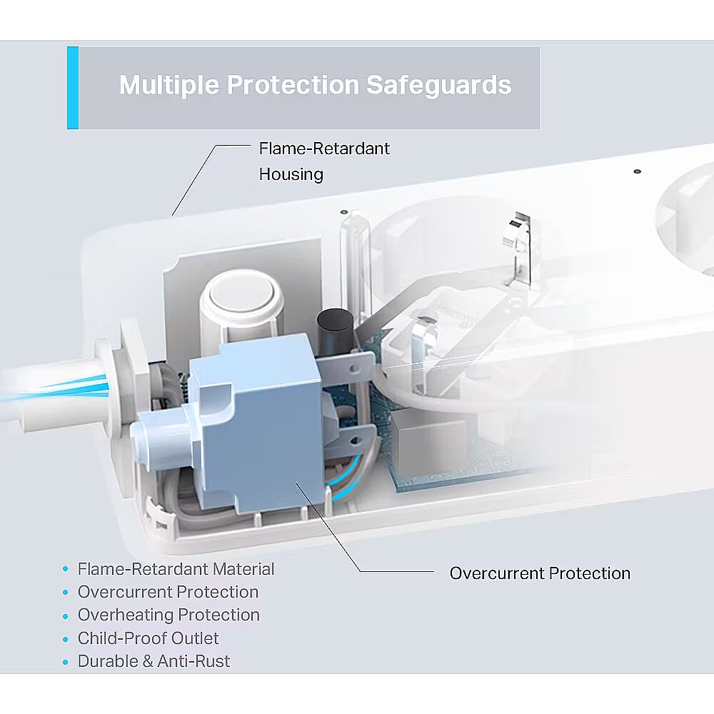 Description - TP-LINK Tapo P300 Smart Wi-Fi Power Strip Individual Control Separately control 3 smart outlets on the power strip via app or voice commands. 18 W Fast Charging Supports up to 18W PD and QC3.0 charging for compatible devices. HomeKit Enable Control your connected devices directly from your Apple devices. Remote Control Instantly turn connected devices on/off wherever you are through the Tapo app. Voice Control Manage your smart plug with voice commands via Amazon Alexa, Siri, or the Google Assistant. Schedule & Timer Set schedules or timers to automate conneted devices. Away Mode Automatically turns devices on and off at different times to simulate occupancy for added security. Easy Setup and Use No hub required, set up quickly and manage easily through the free app. Guaranteed Safety Multiple safety features offer all-round protection to safeguard you and your family.